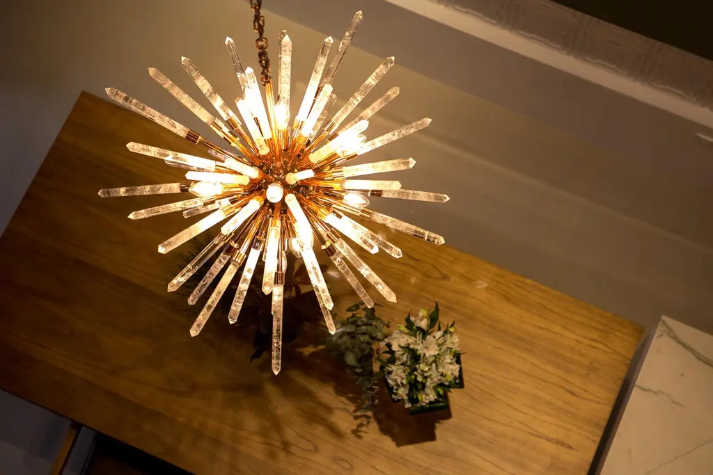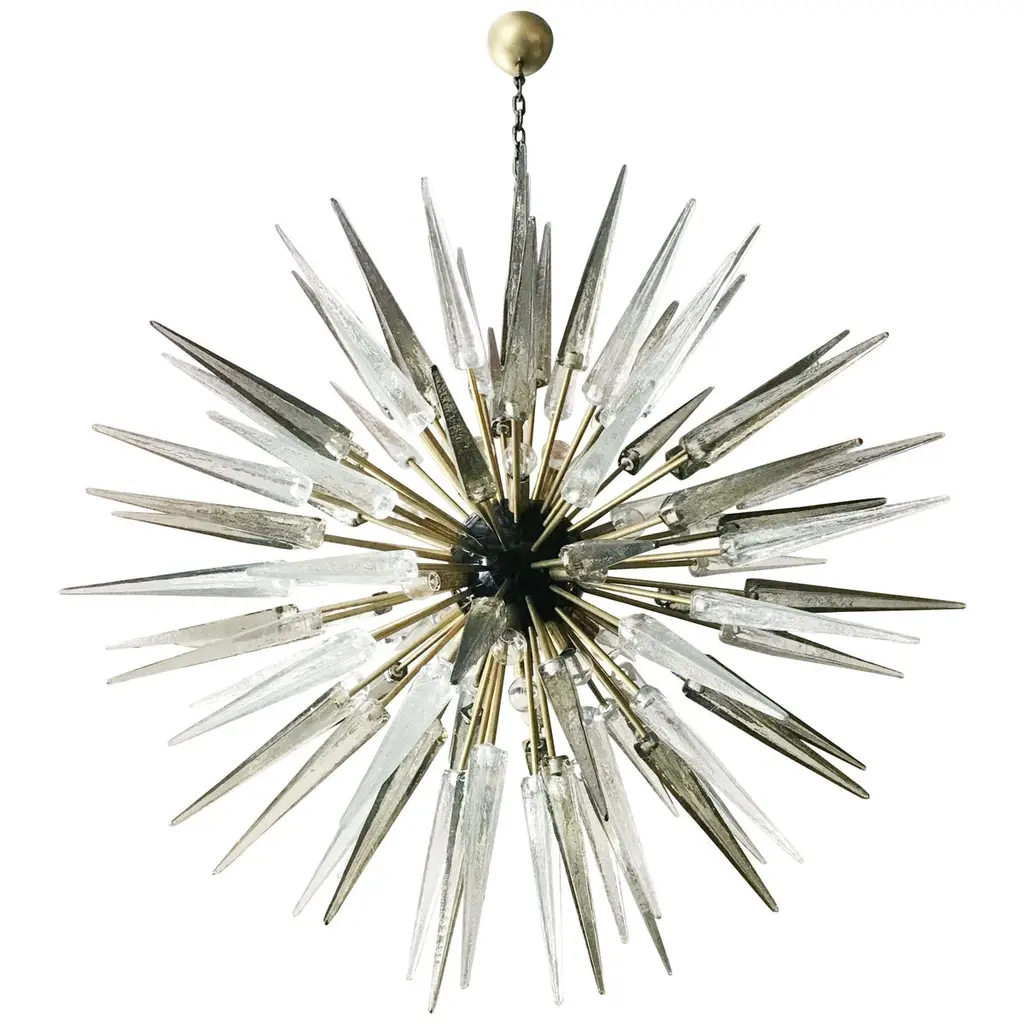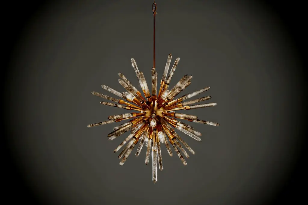 White quartz and silver pendant lamp by AverDimensions: D 84 x W 84 x H 100 cm.Lighting: 18 x E14Finish: Silver leaf, old silver leaf, gold leaf, old gold leaf, copper leaf, rusty, pink golf, brass.Rock crystal: White quartz, smoked quartz.