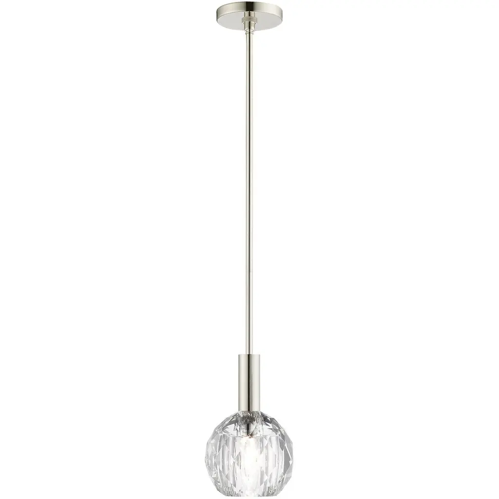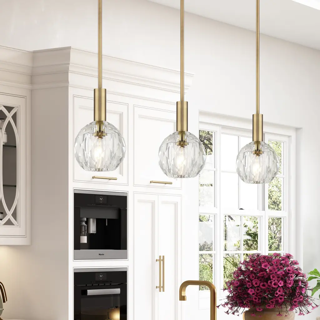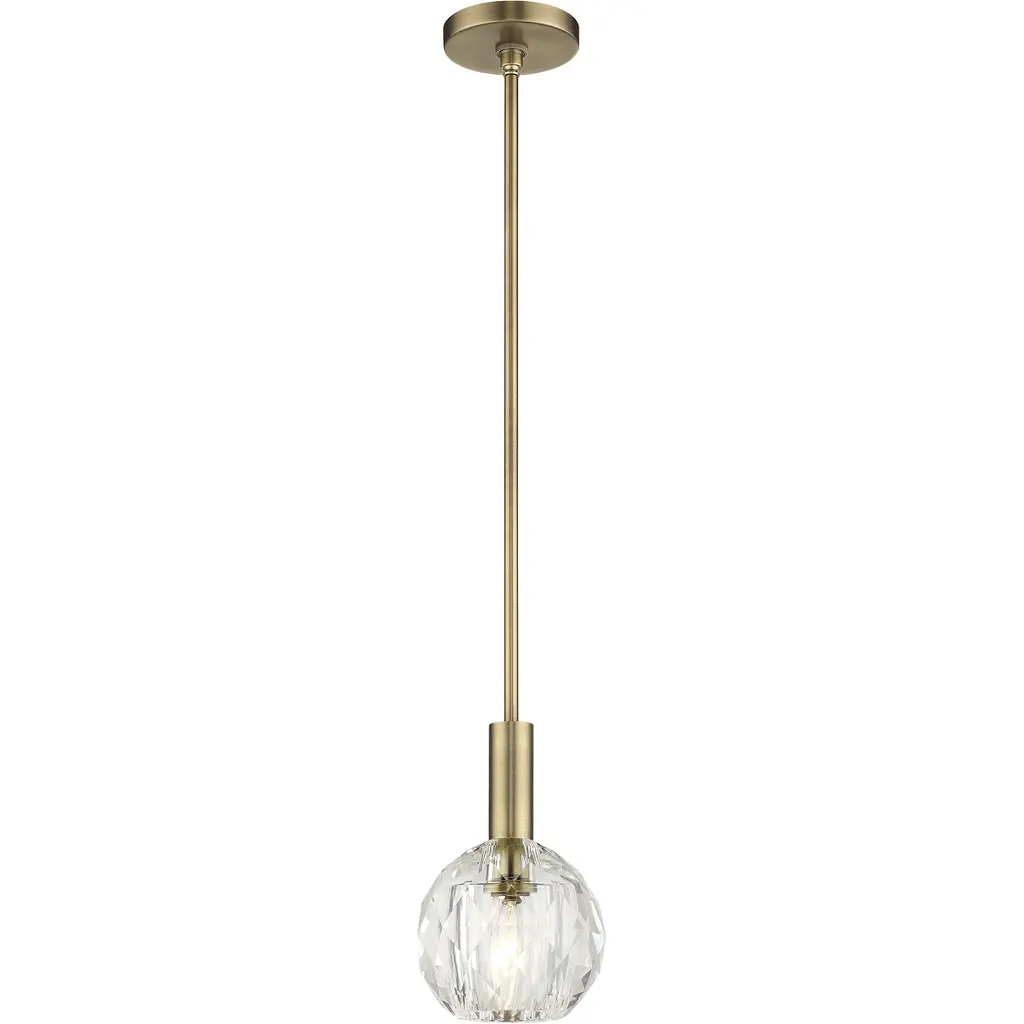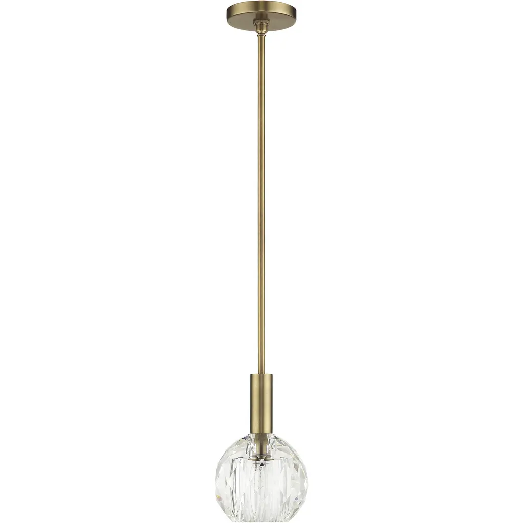 Clear faceted crystal makes an elegant appearance in this natural brass pendant light. The Whitfield is small and attractive, and will make just as dazzling an impression when used in multiples as it will when used alone.