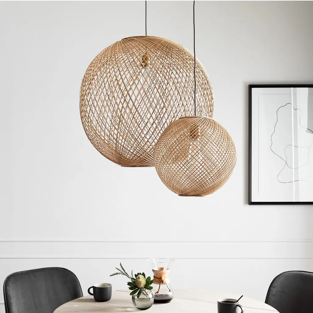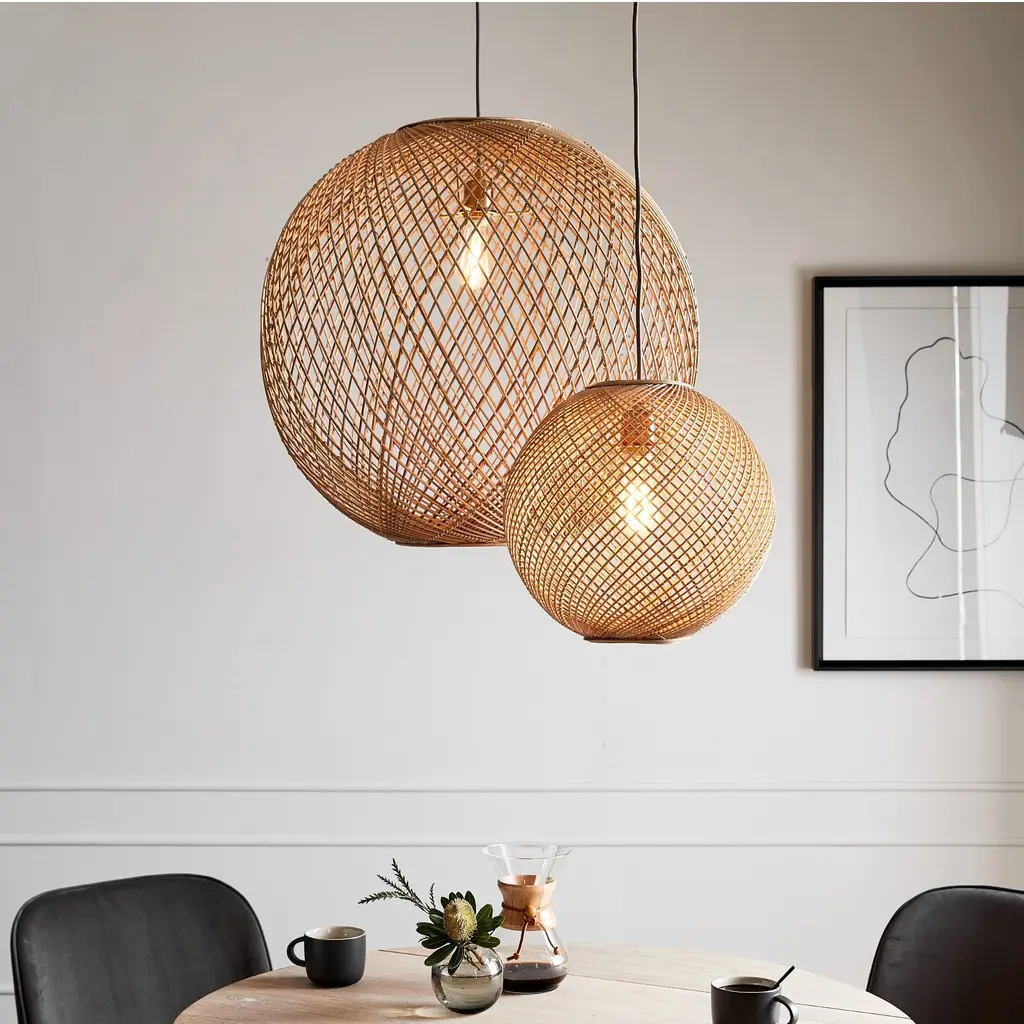 A boho-inspired piece with a modern twist, our textural Wicker Globe Pendant is a relaxed, go-with-everything light solution. The adjustable hanging height makes it an easy fit in any space.