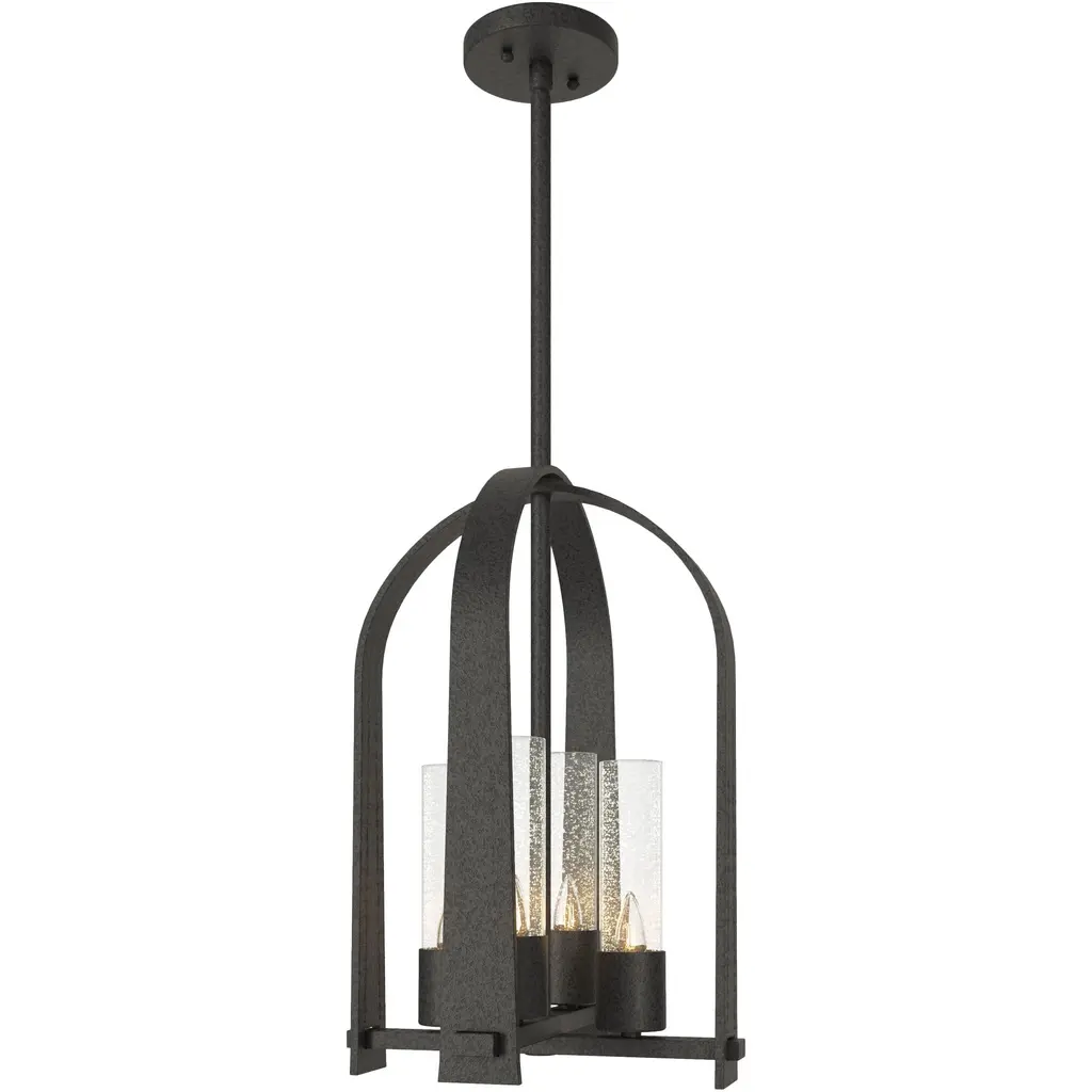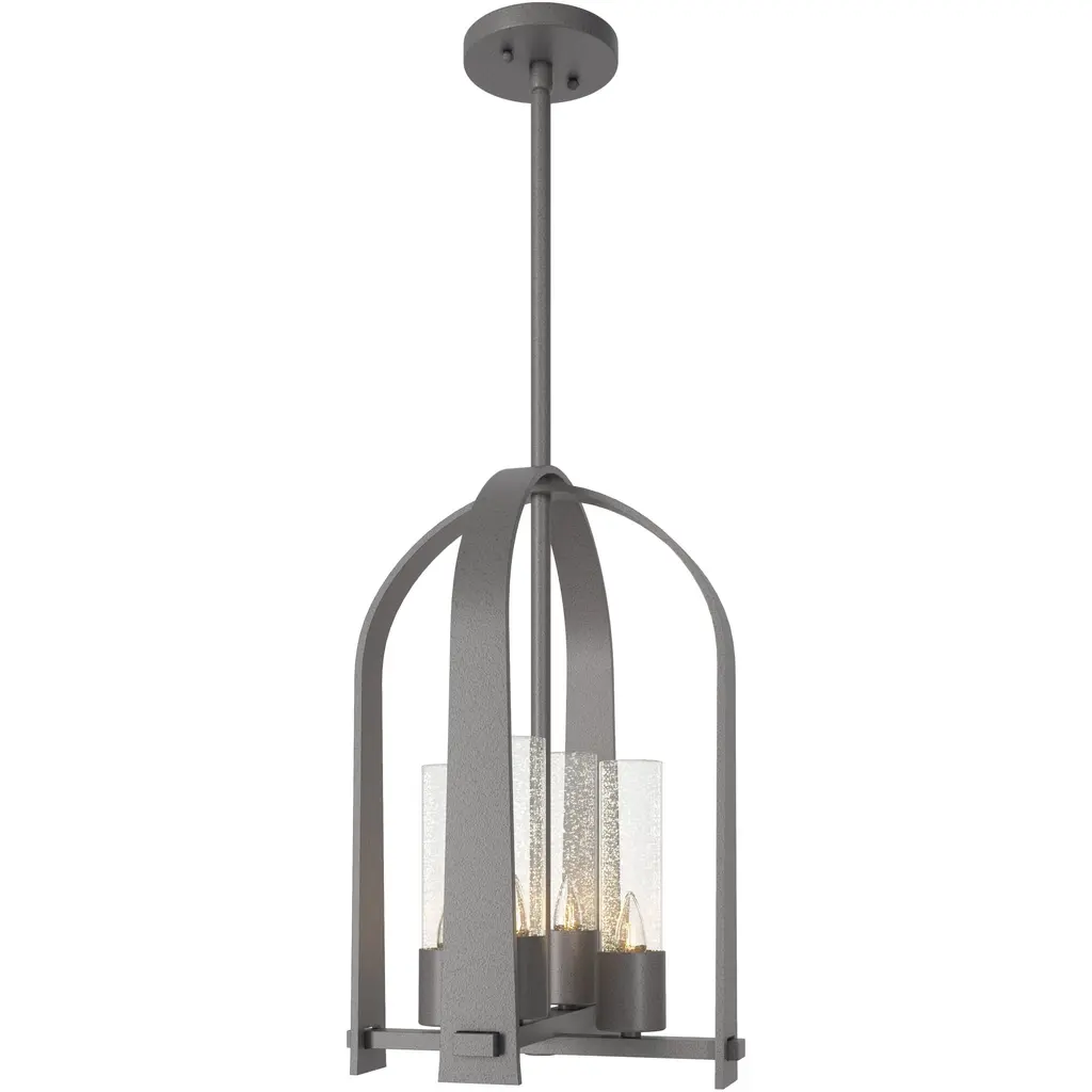 The Wicker Park collection is the perfect statement piece for your home. The stark lines of the mesh shades are softened by the glow from the candelabra lamping. This collection will complement any industrial, modern country, or urban loft style home. A warm pewter finish ties everything together. This drum pendant is ideal for kitchens, dining areas, stairwells, and foyers. Height is adjustable with the included down rods compatible with sloped ceilings.