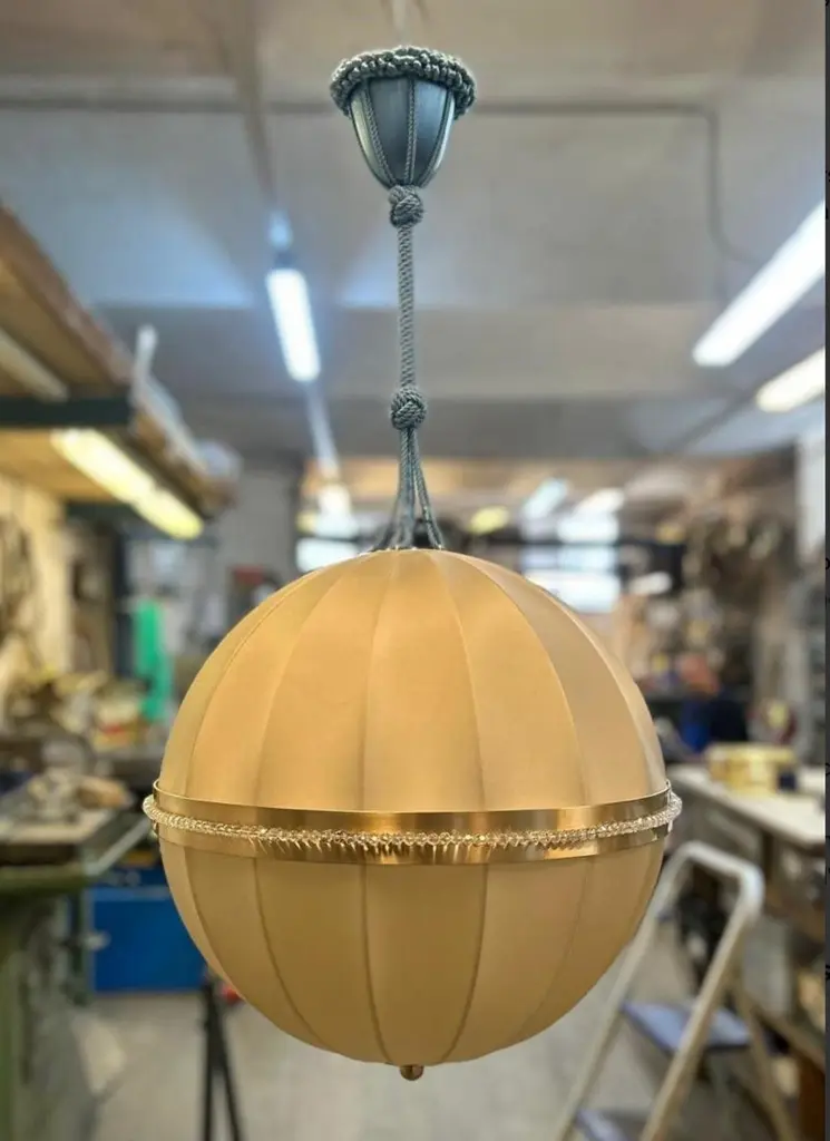 Originally a Josef Hoffmann design for the Staekelborg, Knips and for the Berta Zuckerkandl Mansion. This one was designed for the famous Graben Cafè in Vienna - Comes in all sizes. The other images shows the lamp in a showroom of the historical Wiener Werkstaette. Braided version as well. No glasses if requested.Total drop is custom madeMost components according to the UL regulations, with an additional charge we will UL-list and label our fixtures.