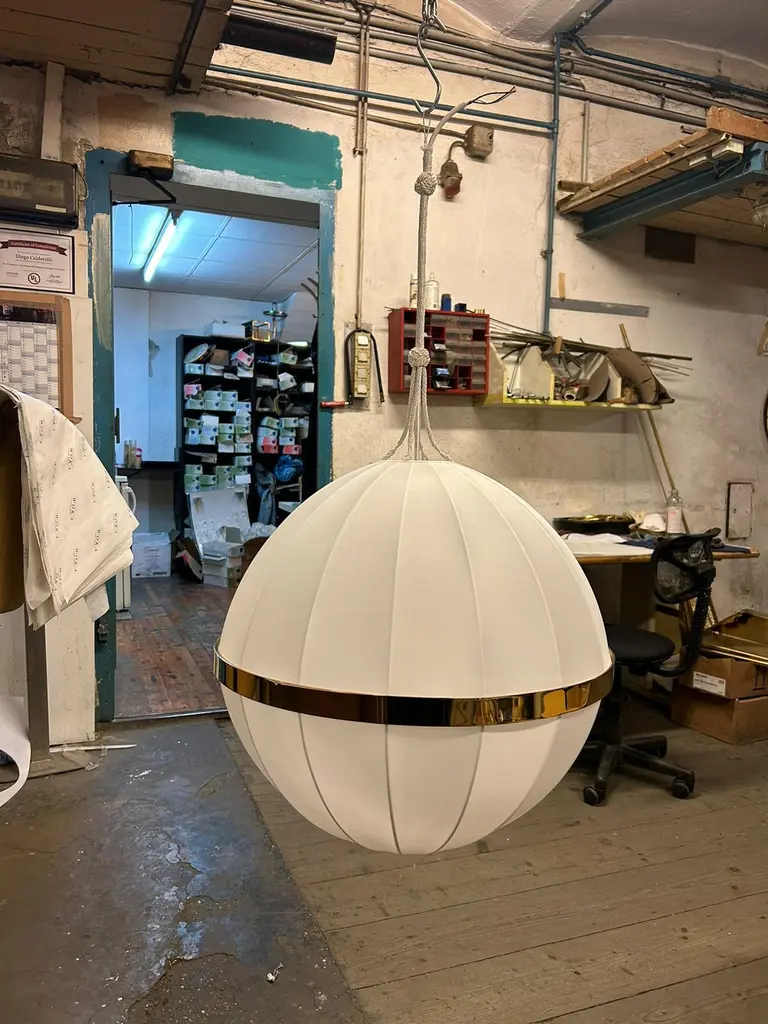 Originally a Josef Hoffmann design for the Staekelborg, Knips and for the Berta Zuckerkandl Mansion. This one was designed for the famous Graben Cafè in Vienna - Comes in all sizes. The other images shows the lamp in a showroom of the historical Wiener Werkstaette. Braided version as well. No glasses if requested.Total drop is custom madeMost components according to the UL regulations, with an additional charge we will UL-list and label our fixtures.