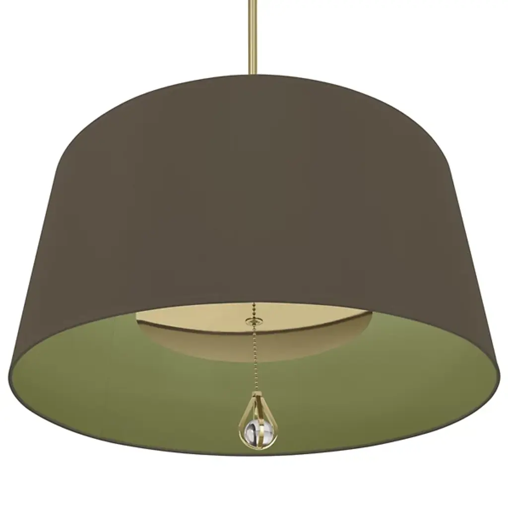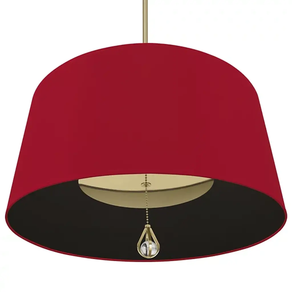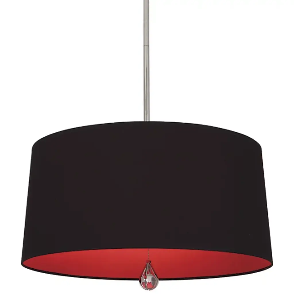 Traditionally trendy. The Robert Abbey Williamsburg Custis Pendant matches a simply elegant silhouette with on-trend color combinations to create a chic look. The drum shaped-shade has contrasting inner and outer colors, finished with a dangling lead crystal finial. As part of the WILLIAMSBURG collection, the Custis is designed and manufactured in the United States with inspiration taken from antique colonial art.