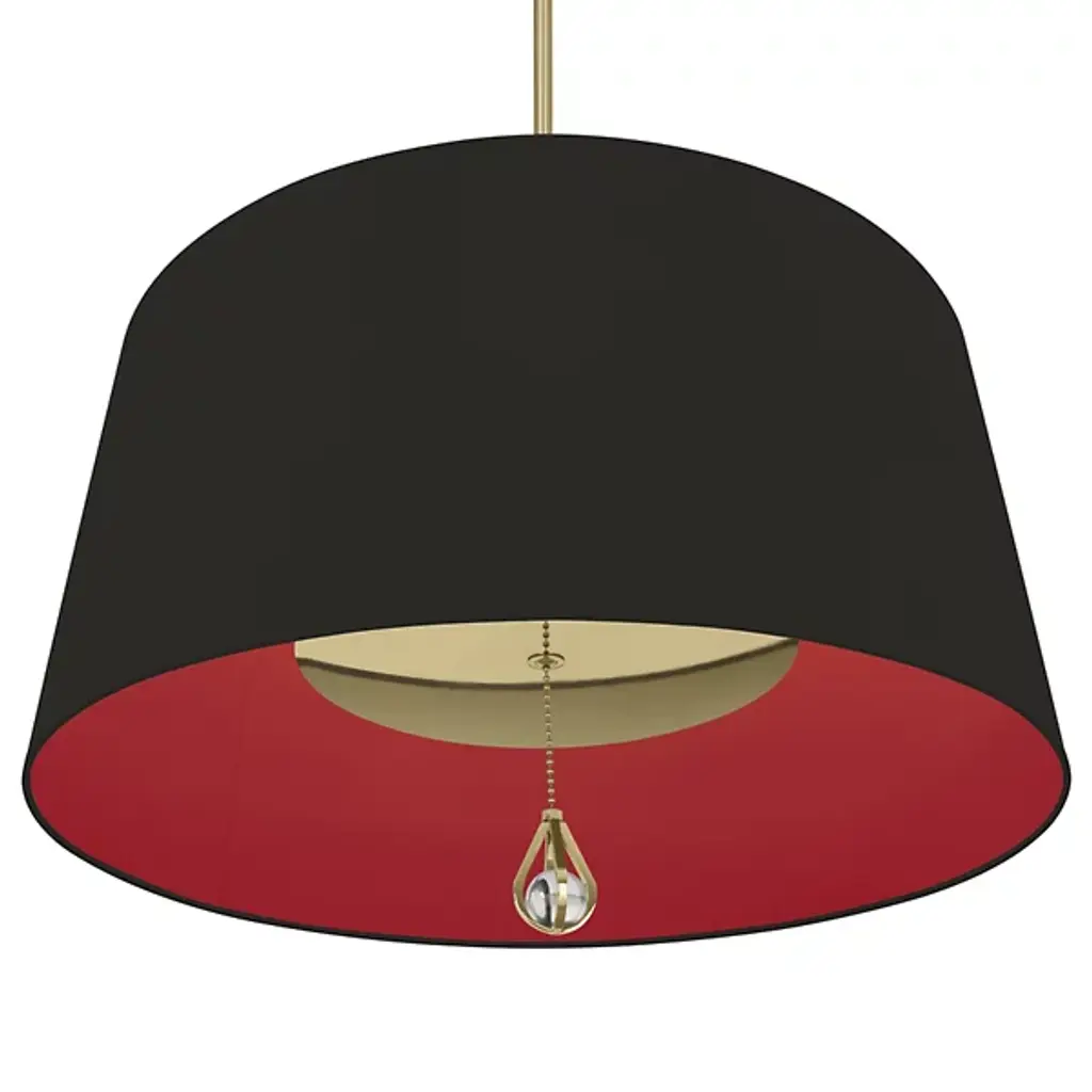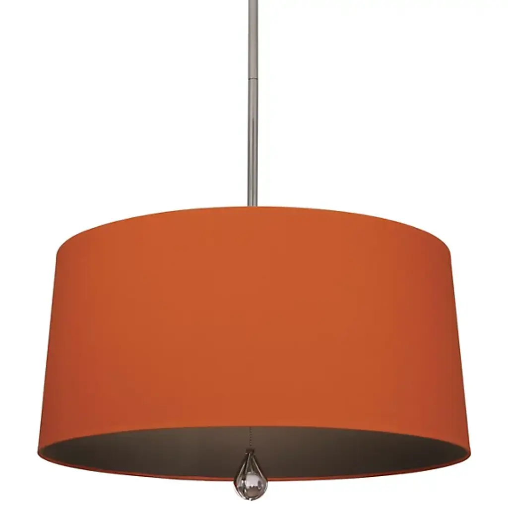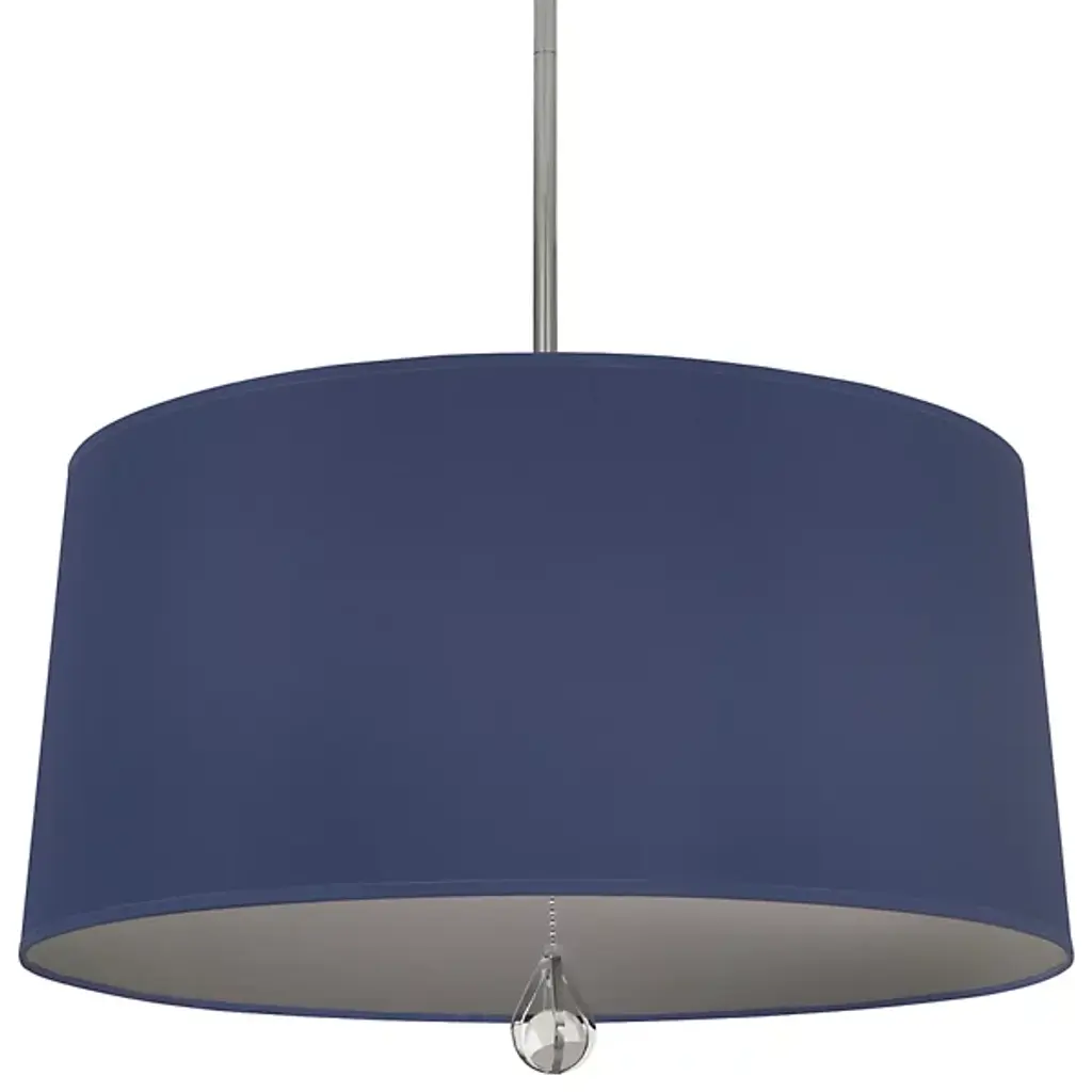 Traditionally trendy. The Robert Abbey Williamsburg Custis Pendant matches a simply elegant silhouette with on-trend color combinations to create a chic look. The drum shaped-shade has contrasting inner and outer colors, finished with a dangling lead crystal finial. As part of the WILLIAMSBURG collection, the Custis is designed and manufactured in the United States with inspiration taken from antique colonial art.