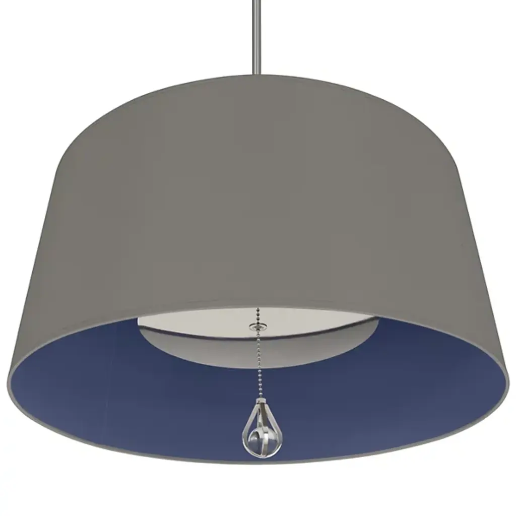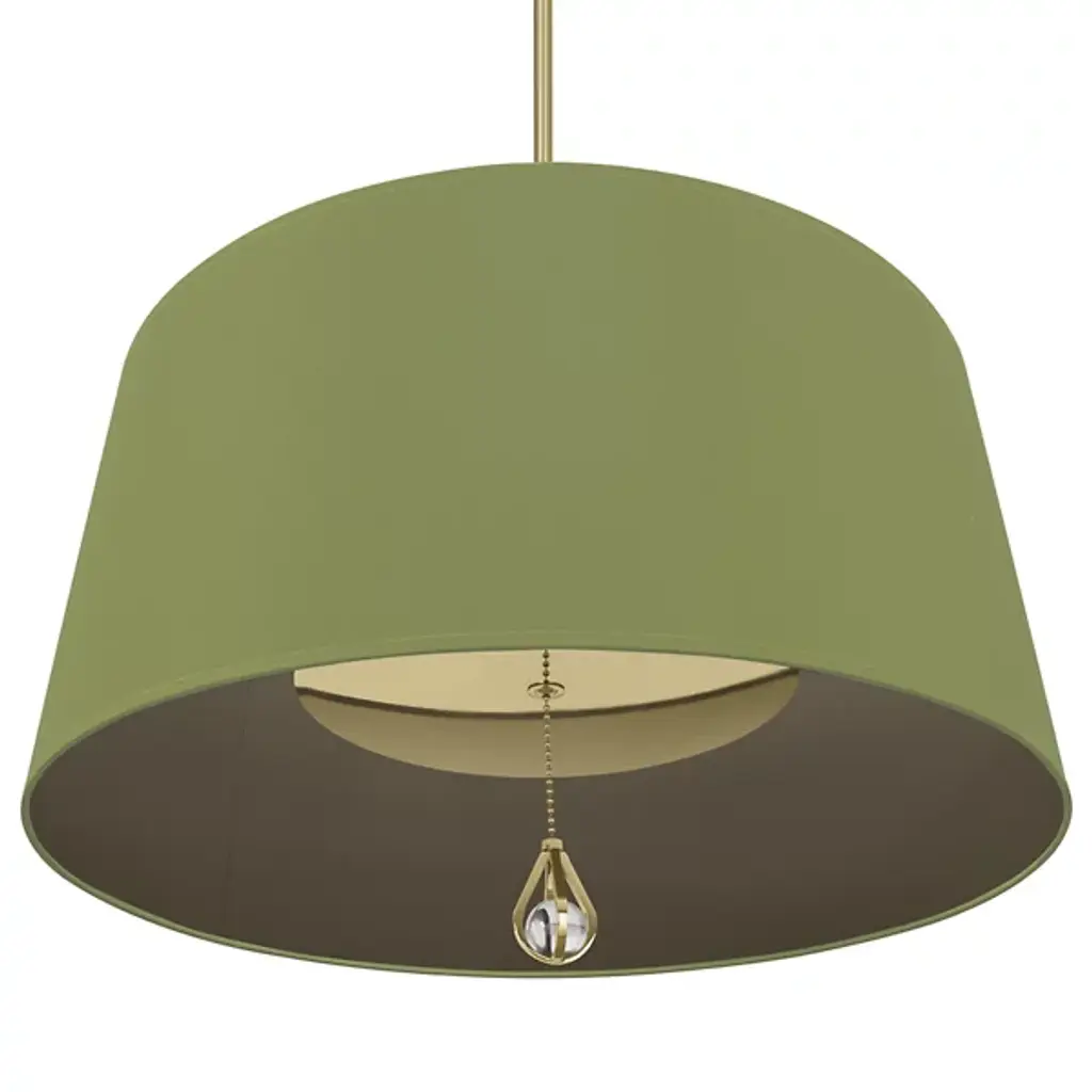 Traditionally trendy. The Robert Abbey Williamsburg Custis Pendant matches a simply elegant silhouette with on-trend color combinations to create a chic look. The drum shaped-shade has contrasting inner and outer colors, finished with a dangling lead crystal finial. As part of the WILLIAMSBURG collection, the Custis is designed and manufactured in the United States with inspiration taken from antique colonial art.