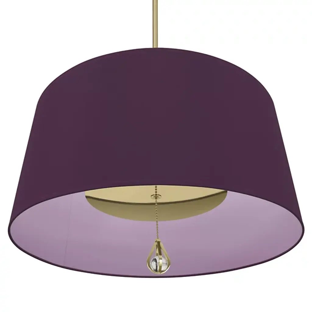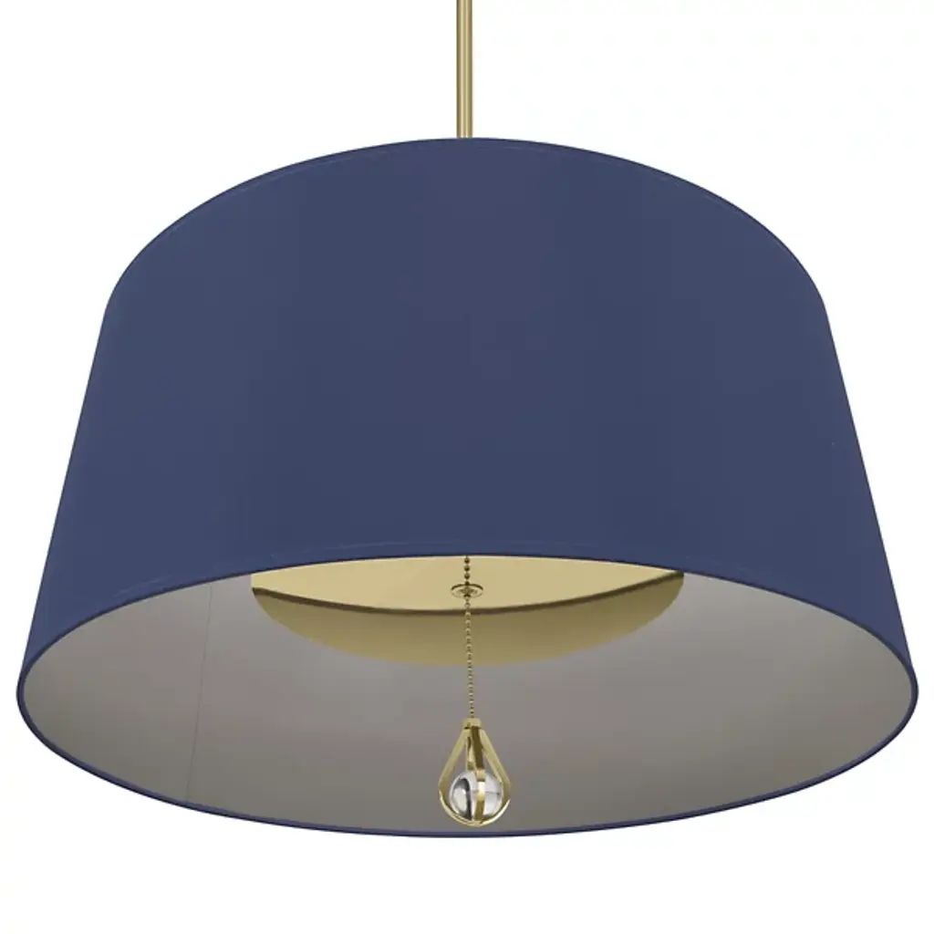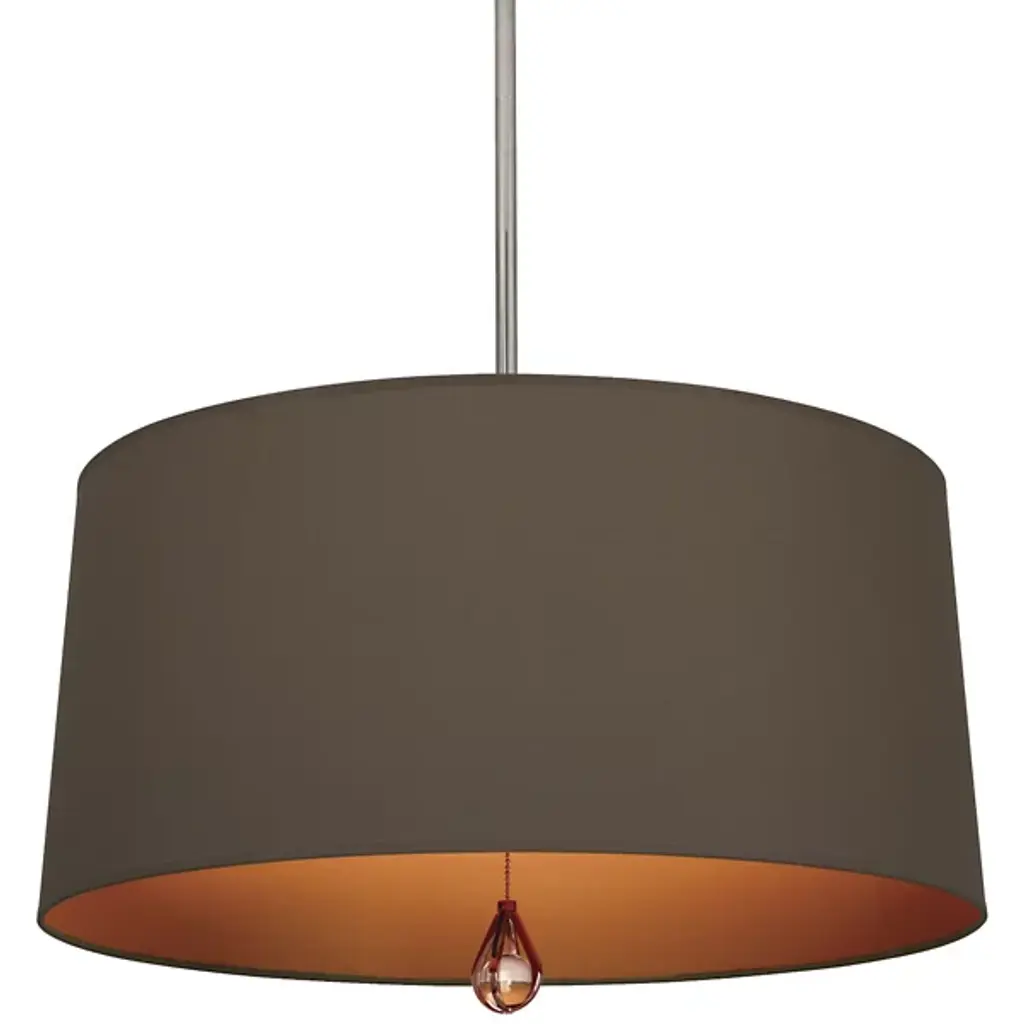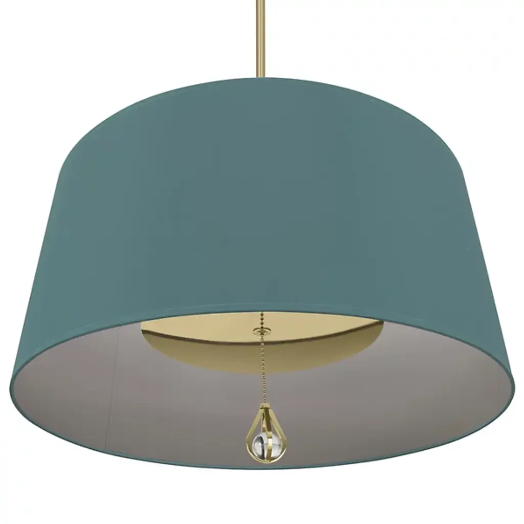 Traditionally trendy. The Robert Abbey Williamsburg Custis Pendant matches a simply elegant silhouette with on-trend color combinations to create a chic look. The drum shaped-shade has contrasting inner and outer colors, finished with a dangling lead crystal finial. As part of the WILLIAMSBURG collection, the Custis is designed and manufactured in the United States with inspiration taken from antique colonial art.