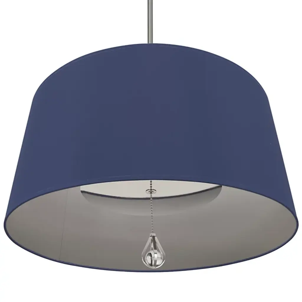 Traditionally trendy. The Robert Abbey Williamsburg Custis Pendant matches a simply elegant silhouette with on-trend color combinations to create a chic look. The drum shaped-shade has contrasting inner and outer colors, finished with a dangling lead crystal finial. As part of the WILLIAMSBURG collection, the Custis is designed and manufactured in the United States with inspiration taken from antique colonial art.
