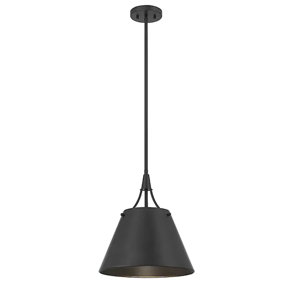 Transform your interior spaces with the Willis Pendant from Savoy House. A fusion of timeless charm and modern versatility, this 1-light pendant features a clean-surfaced solid metal shade, effortlessly blending vintage and transitional styles. Damp listed for flexible placement, it’s perfect for solo use or in groupings, infusing any space with sophistication, descending from a circular canopy and slender stem, and placing the lamping inside a flaring shade. Add refined character to your surroundings, bringing classic beauty to your decor.
