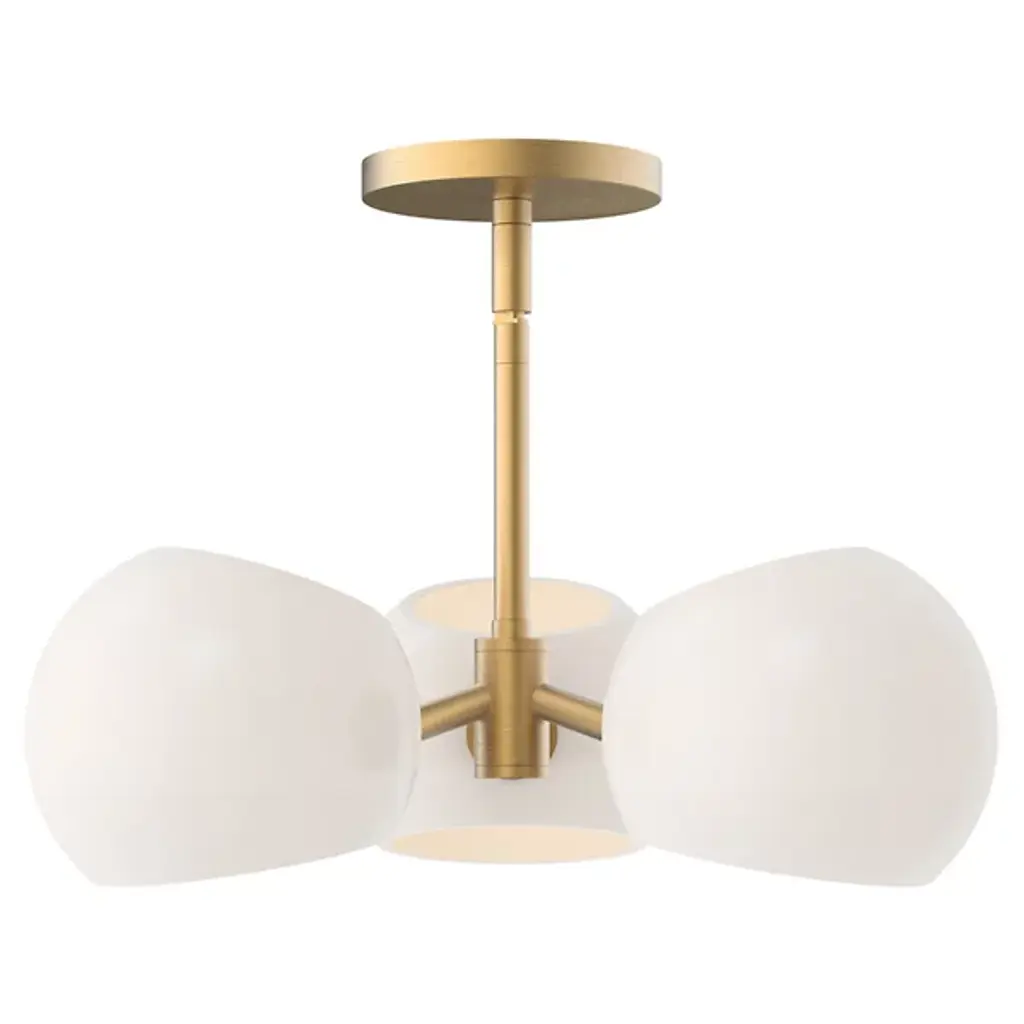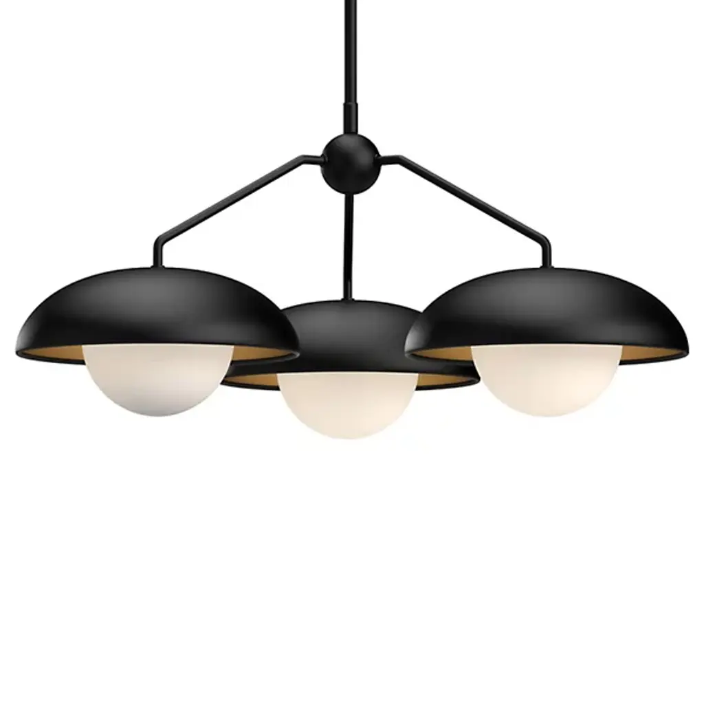 Enhance interior spaces with the stylish lines and modern design of the Willow Pendant from Alora Mood. This Alan Peppin design is an open, simple fixture, secured by a sleek disc canopy and transmitting a central stem down to a cylindrical hub below. The hub extends three short rods out to candelabra lamping set inside curving, translucent shades, gentling bright glare to the sides while transmitting focused pools of vertical light above and below the fixture.