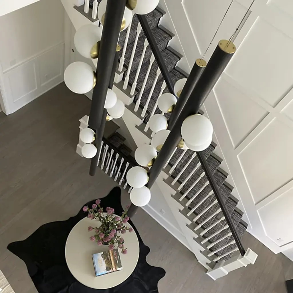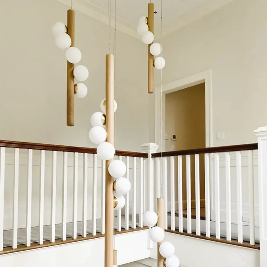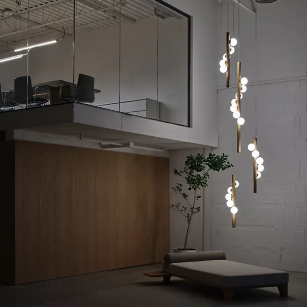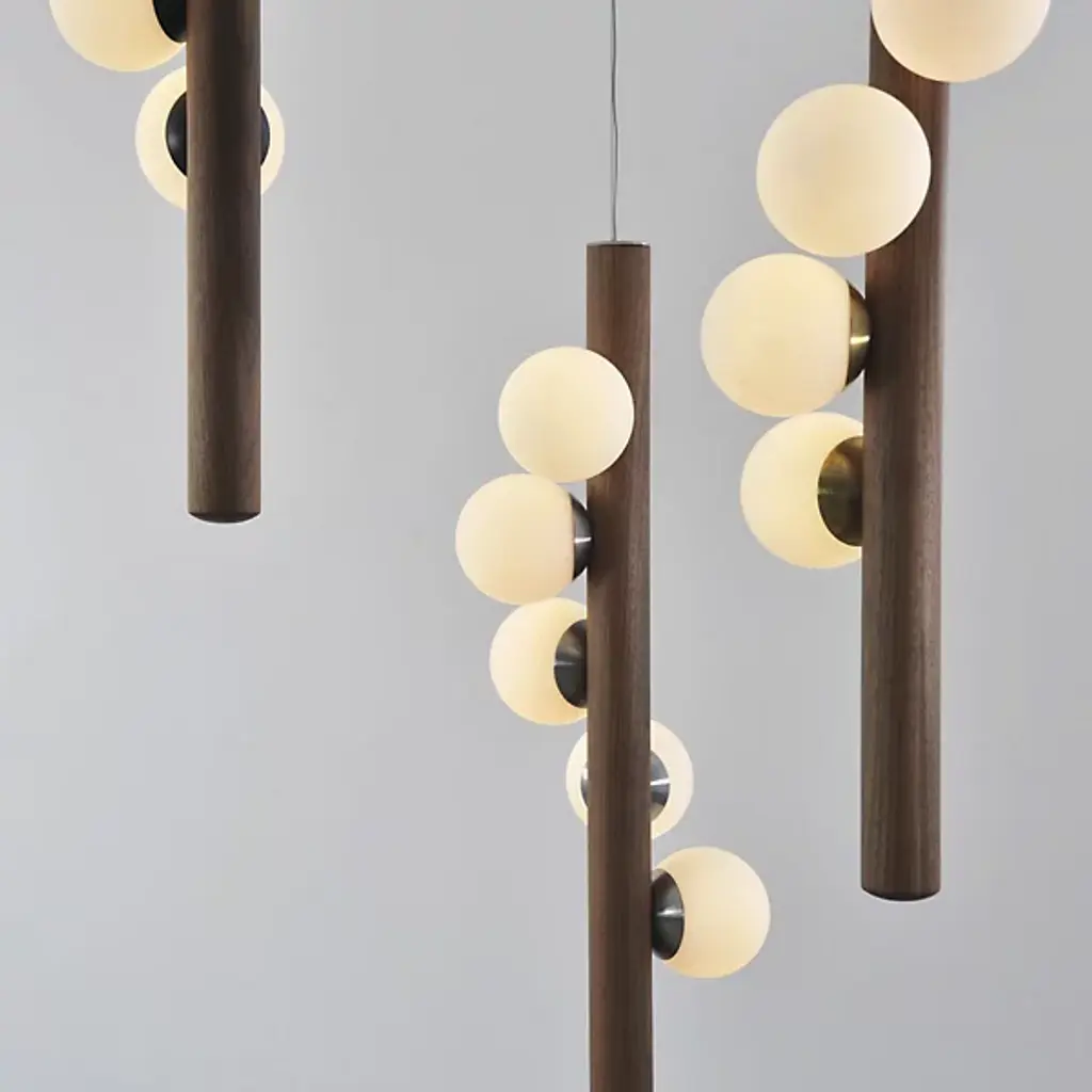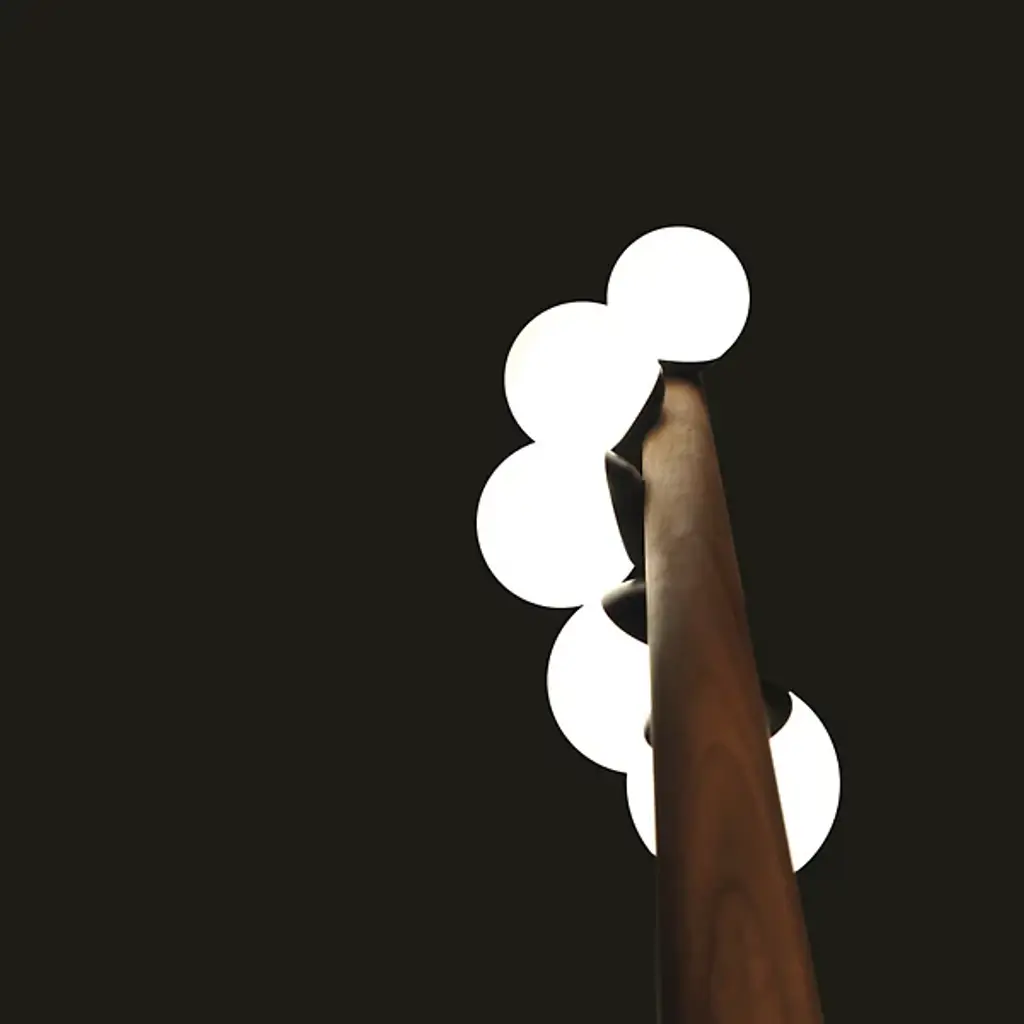 A tree of style that grows from the ceiling instead of the ground. The Willow Vertical Pendant by hollis+morris is perfect for any customer who’d like to branch out into a more natural style for their ceiling lighting setup. A cylinder made of Wood acts as the piece’s frame, with its natural finish imbued with organically occurring grains and blemishes. Several bulb shaped shades made of Glass jut outward from the stem, making the piece subtly resemble a tree.