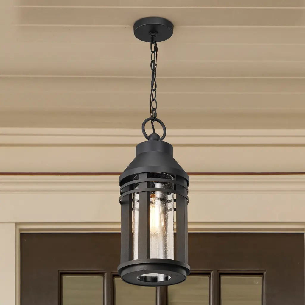 Wilton - 1 Light Hanging Lantern - Matte Black with Clear Seeded Glass