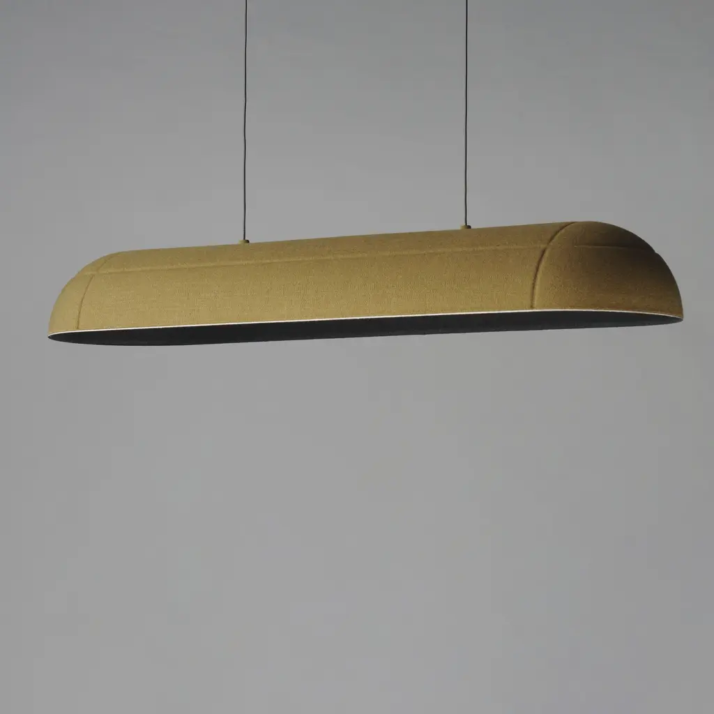 Balancing work and play, the Wimbeldon collection is a fun collection of lighting fixtures that utilizes dual-layered sound dampening felt shades that enhance the acoustics of a space. The deep ridged pattern gracefully intersects elevating the simple forms. Choose from linear or half dome configurations in various colors: Dark Grey and Light Cream felts offer more neutral tones while the Olive exterior with Black felt interior presents a more colorful option. Housed within the shades are high powered LED modules that provide ample functional down lighting.
