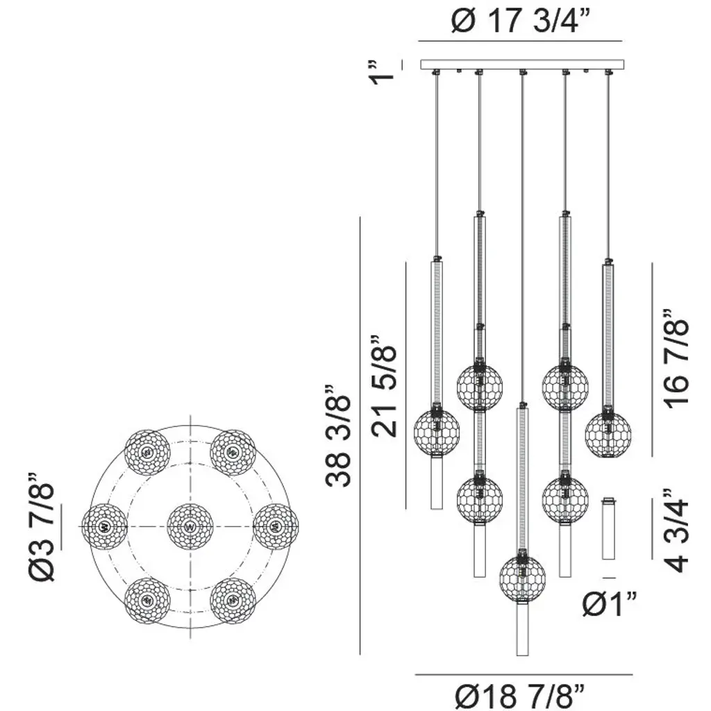 7 LT 17.7" "WINDCHIMER" MATTE BLACK CHANDELIER