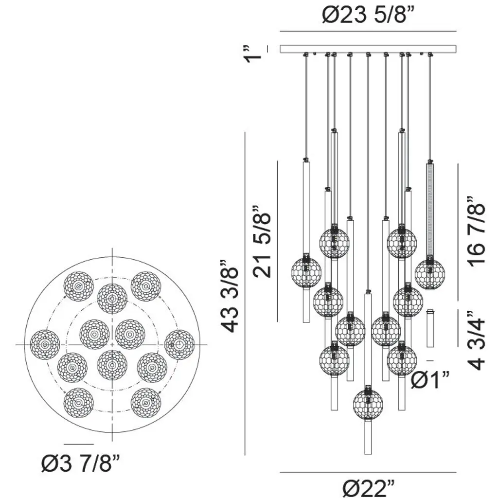 12 LT 22" "WINDCHIMER" MATTE BLACK CHANDELIER
