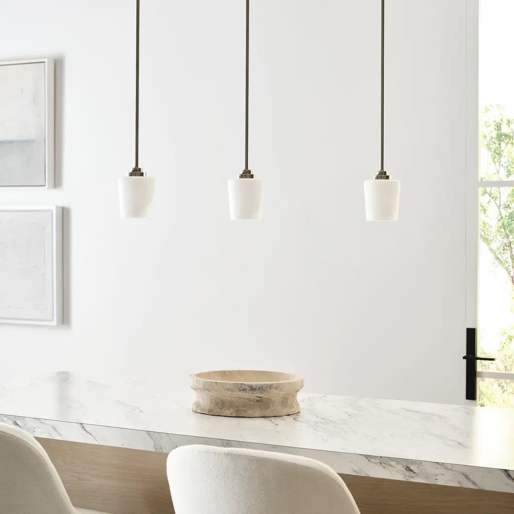 Windom blends traditional design aesthetics with a touch of contemporary appeal. Etched Opal glass sits atop the graceful curving arms giving this family its transitional style. Available in four finishes.