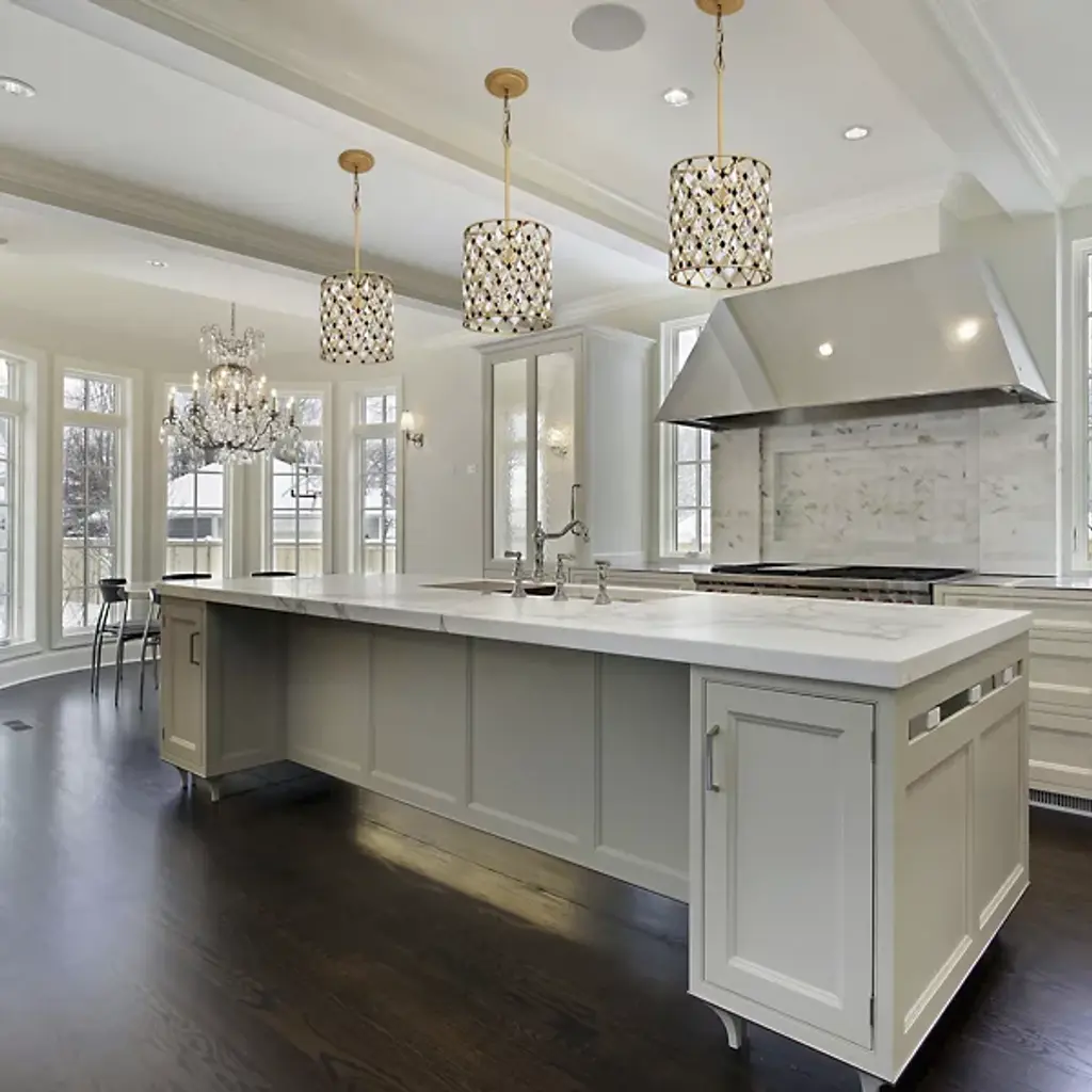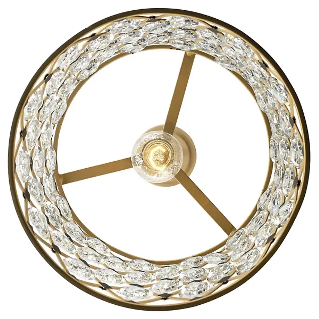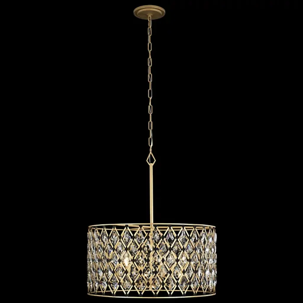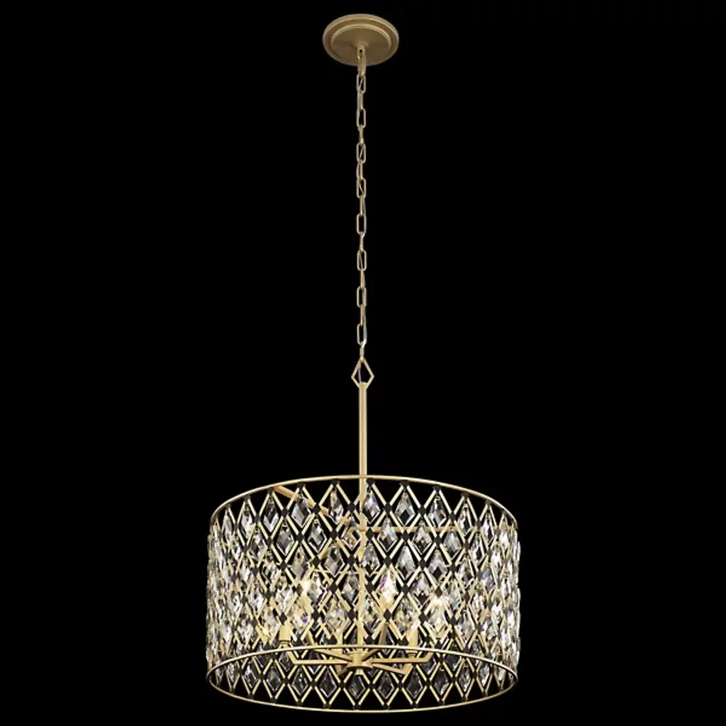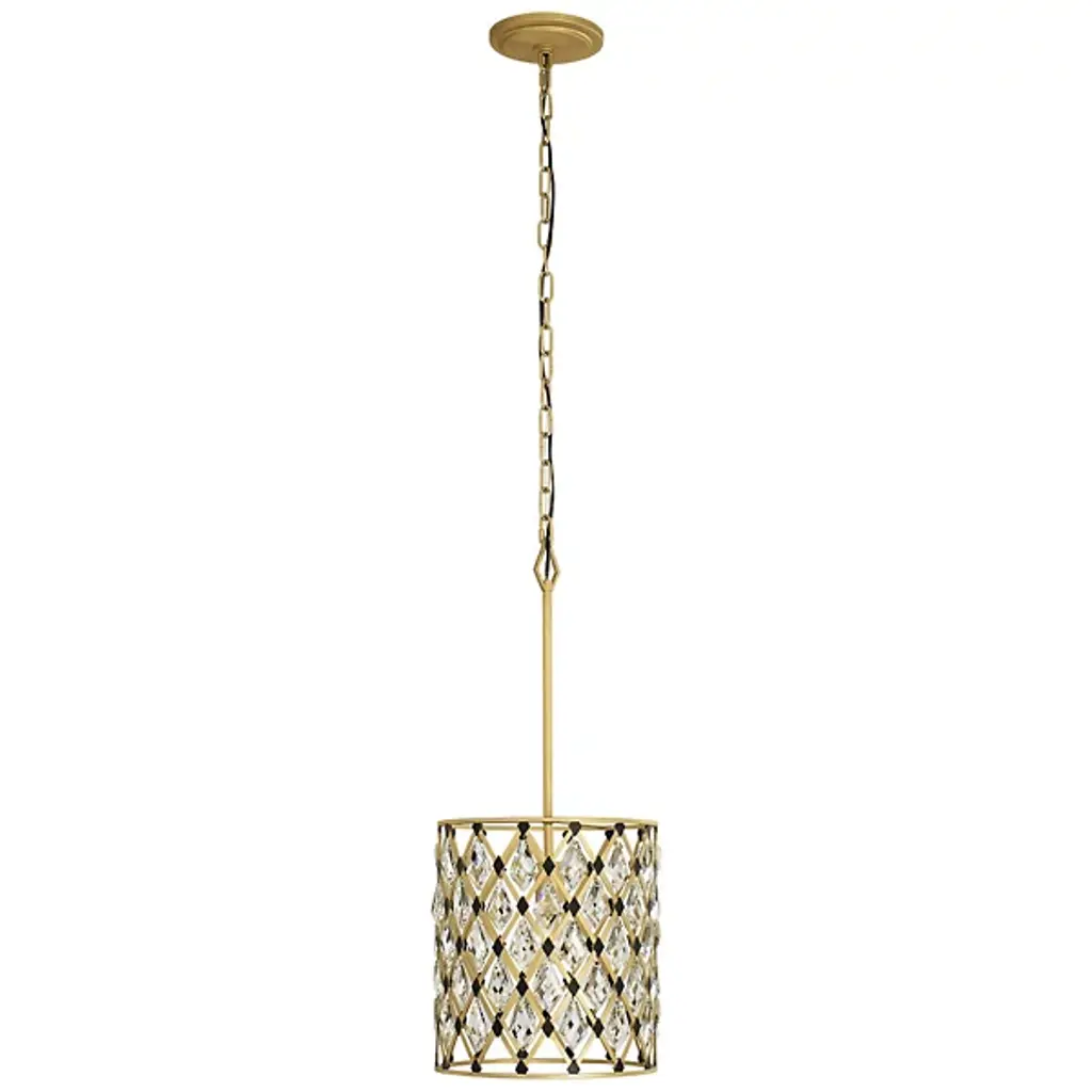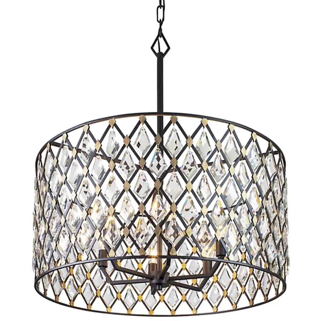 The ideal way to bring a regal touch to modern spaces. With a design inspired by royal tiaras, the Windsor Pendant by Varaluz pairs the clean lines of a drum with the dynamic sparkle of Optic Crystal. It features numerous kite-shaped crystal pendalogues hanging within a double harlequin frame. The frame is hand-forged recycled Steel in contrasting finishes. The hanging crystals effectively camouflage the light sources within and transform the light they produce into shimmering ambience. This modern pendant adds a touch of richness into any space, from dining rooms to kitchens.