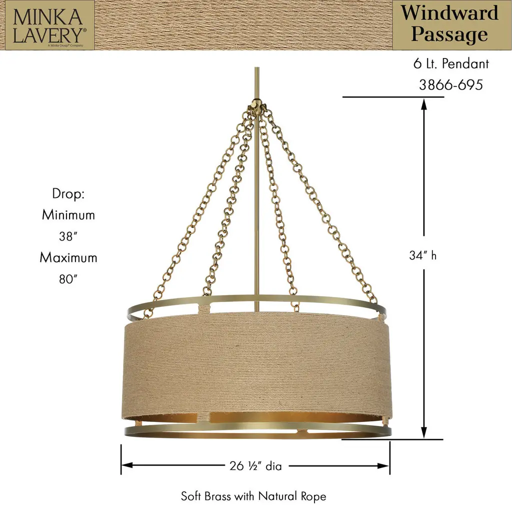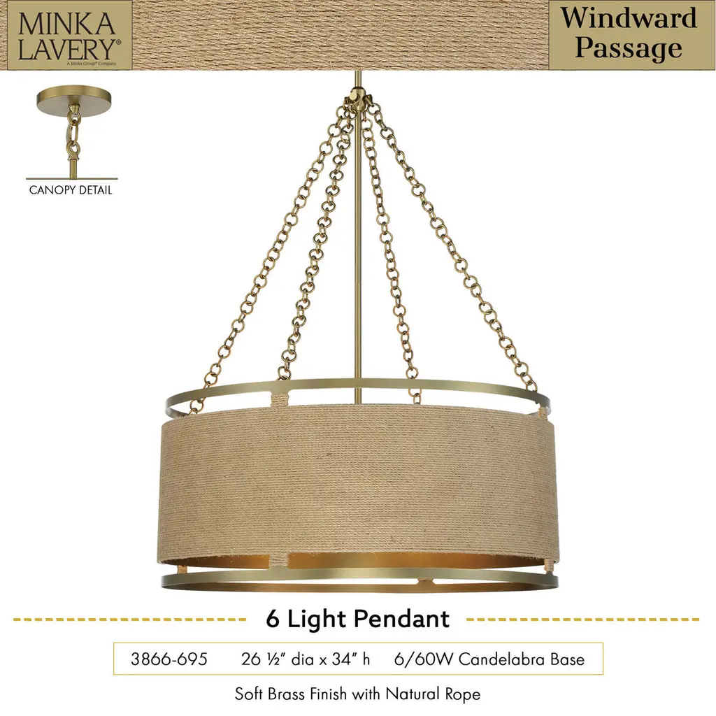 Windward Passage 6 Light 27 Inch Soft Brass Pendant Ceiling Light