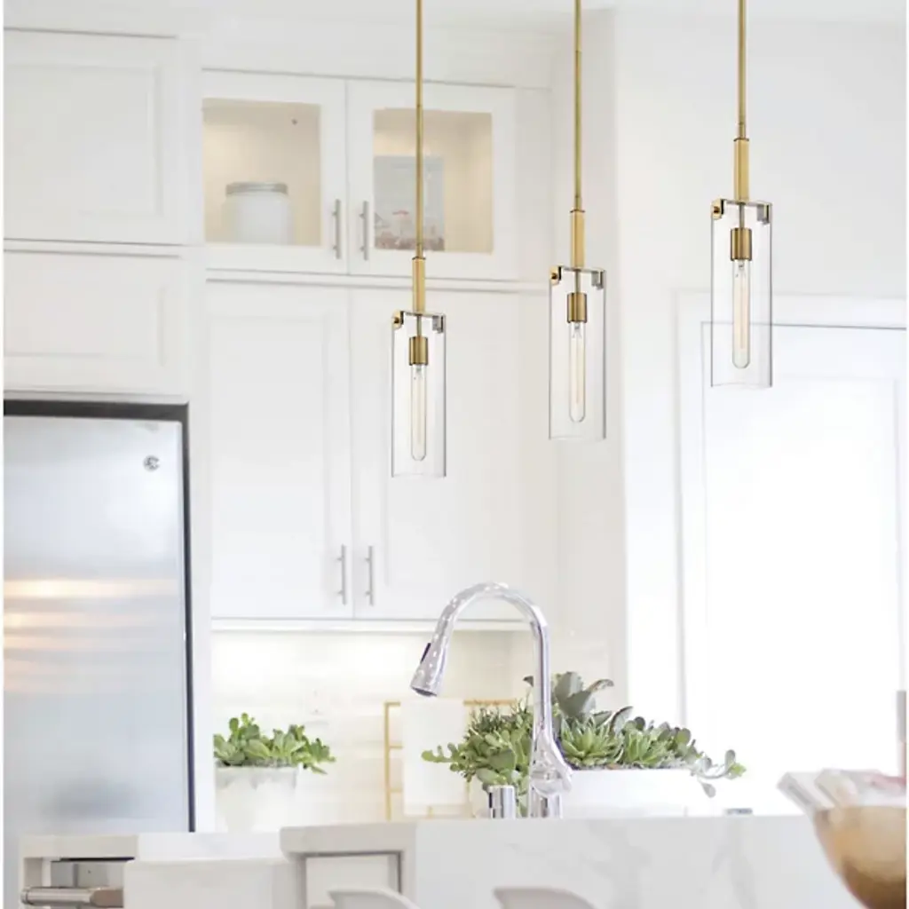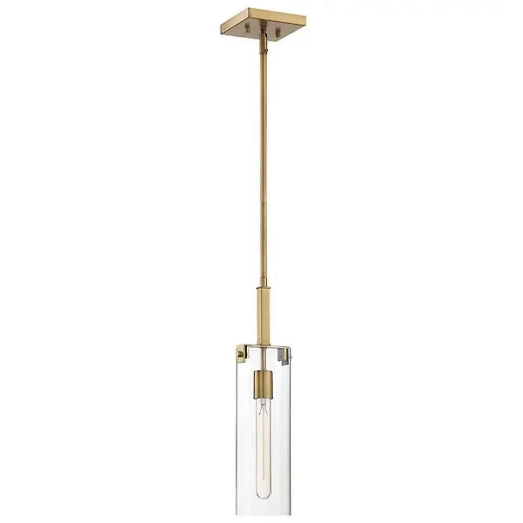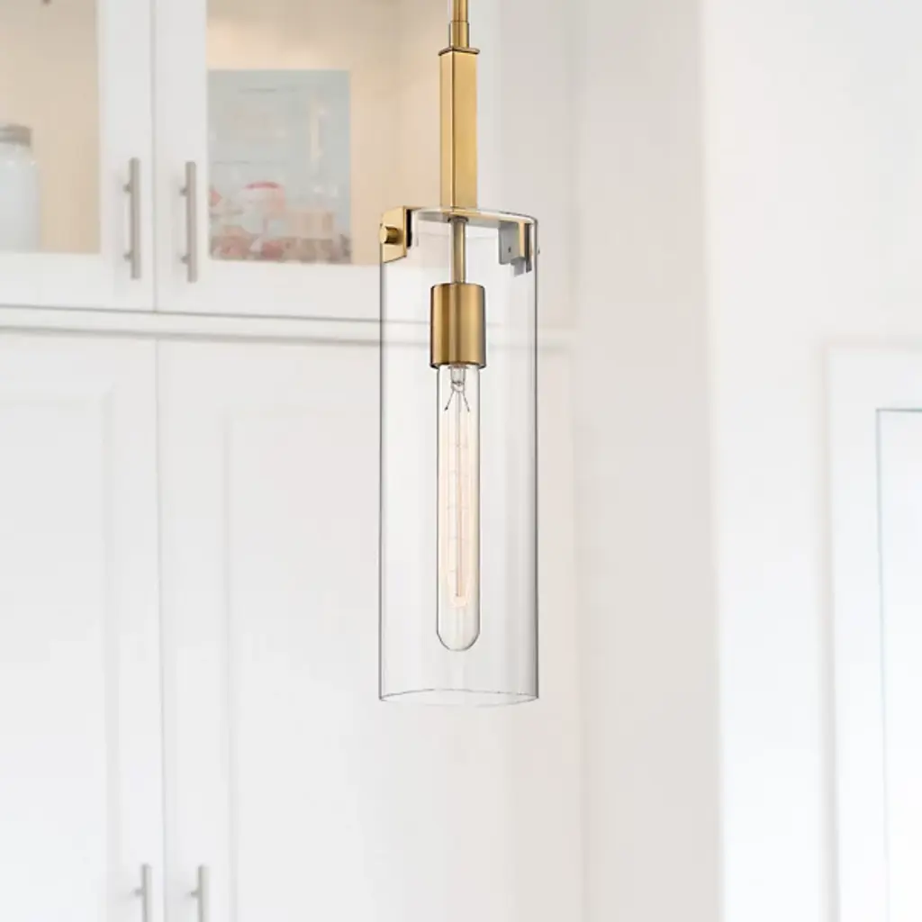 Using the least to get the most. The Winfield Mini Pendant by Savoy House delivers ample style despite its minimal design. Featuring a slender stem hosting a clear glass cylinder shade, this fixture is an essential element when creating a stand-out home décor. Its graceful aesthetic can be mounted solo or aligned in a row and used to brighten up a bedroom, conversation area or kitchen island.