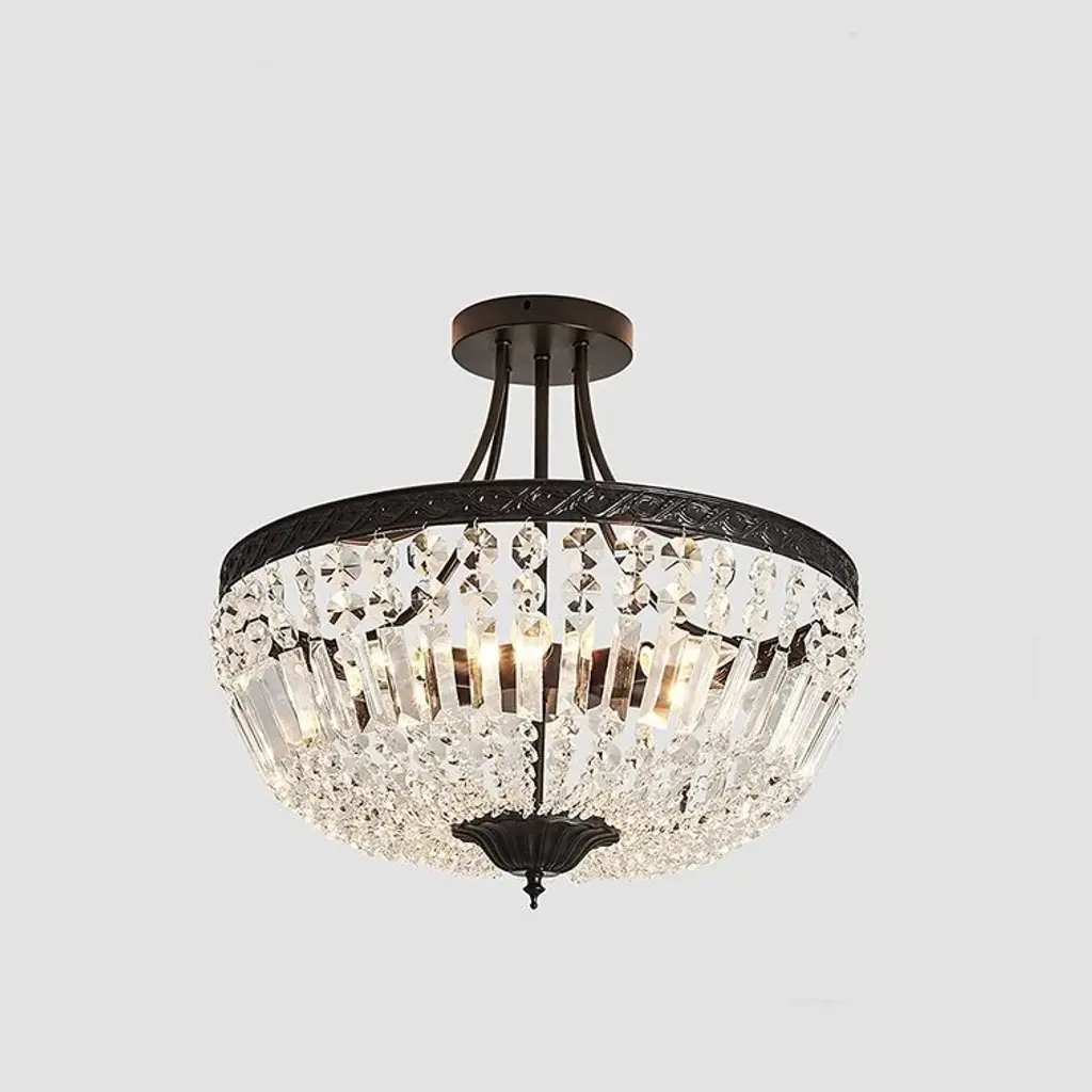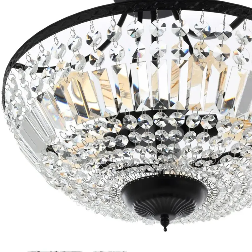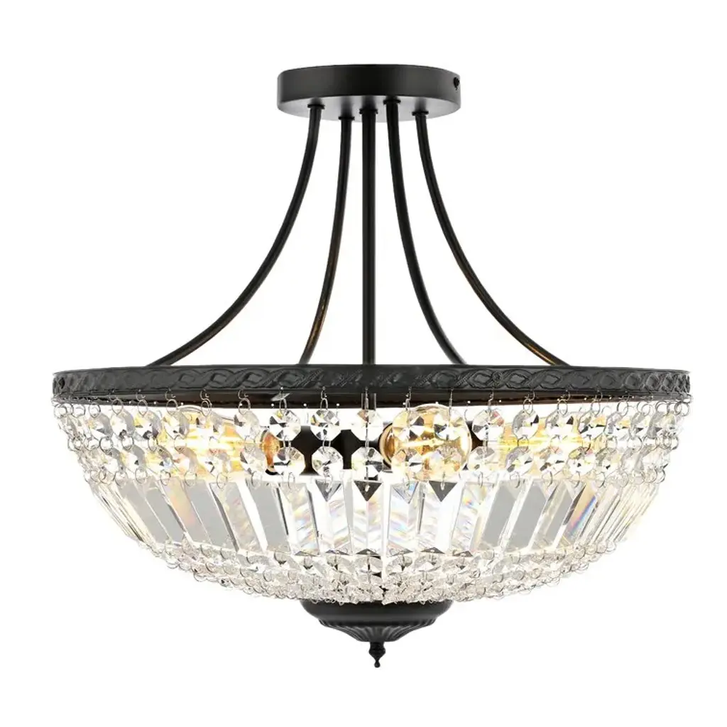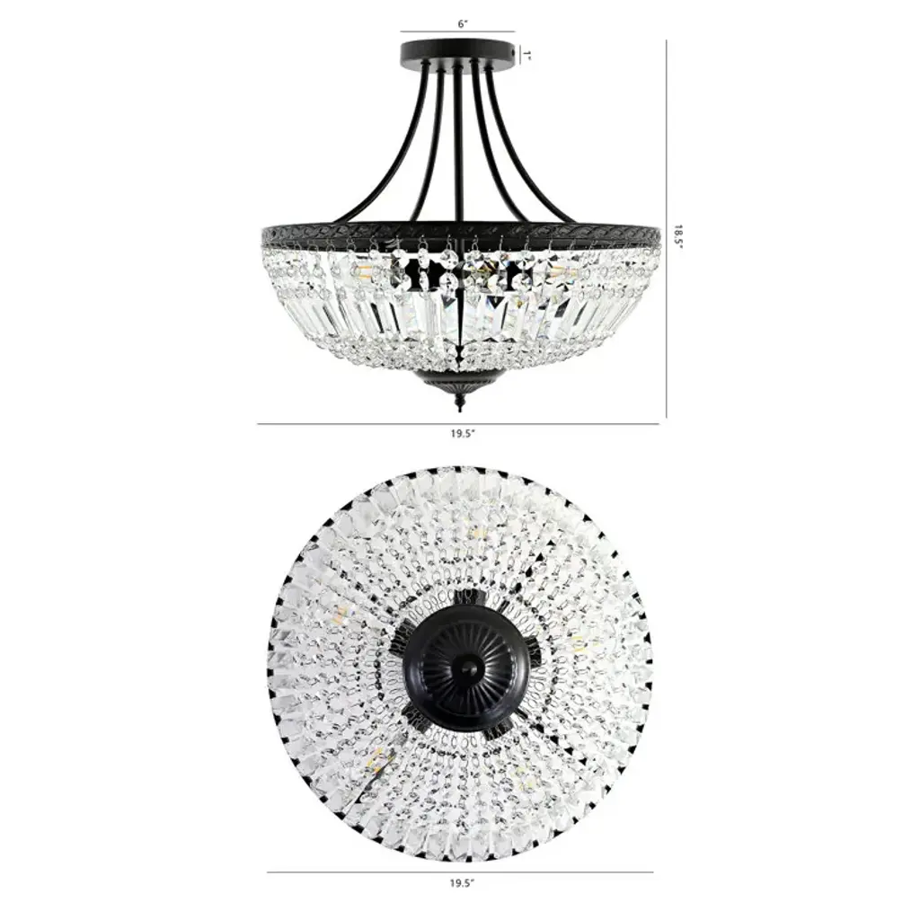 Wingbo 5-Light E26 Round Crystal Ceiling Light Fixture Semi Flush Mount - 19.5" W - Black