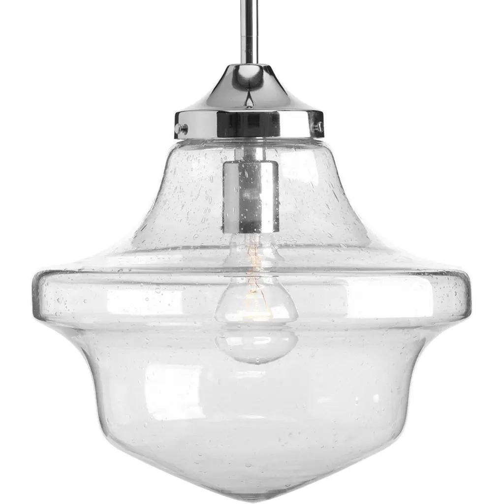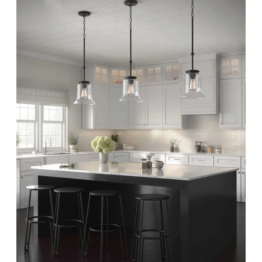 Immerse yourself in a home atmosphere primed for relaxation and inspired thinking with the beautiful craftsmanship of this mini-pendant. Savor this fresh take on a classic light choice as your gaze traces a sleek stem that extends down from a round ceiling plate to a beautiful black light base. A lightly seeded glass shade adds an unexpected, but welcomed dash of modern personality to this clean, traditional design.