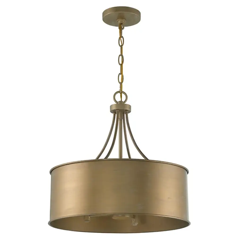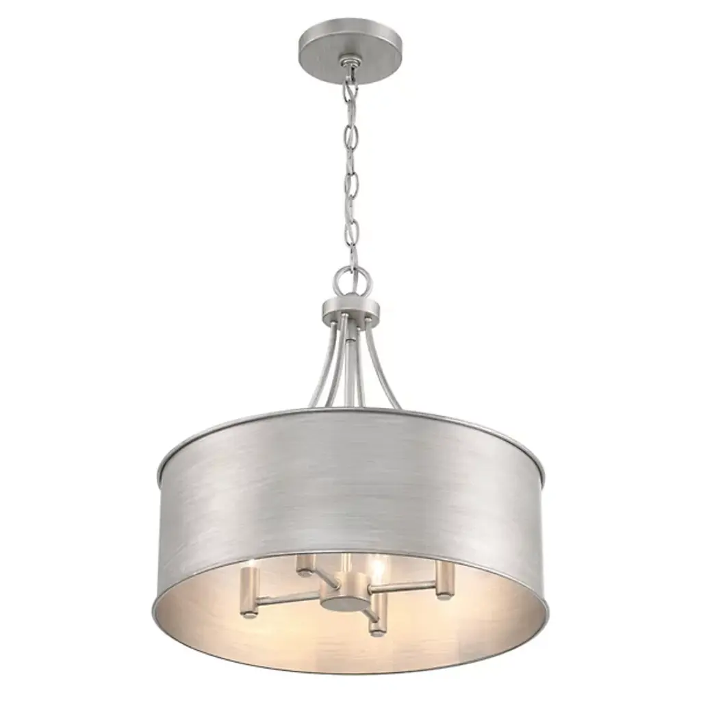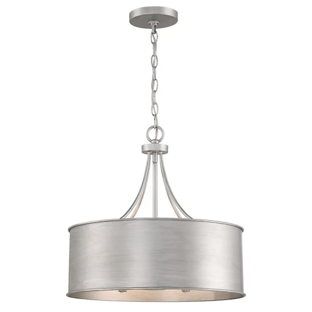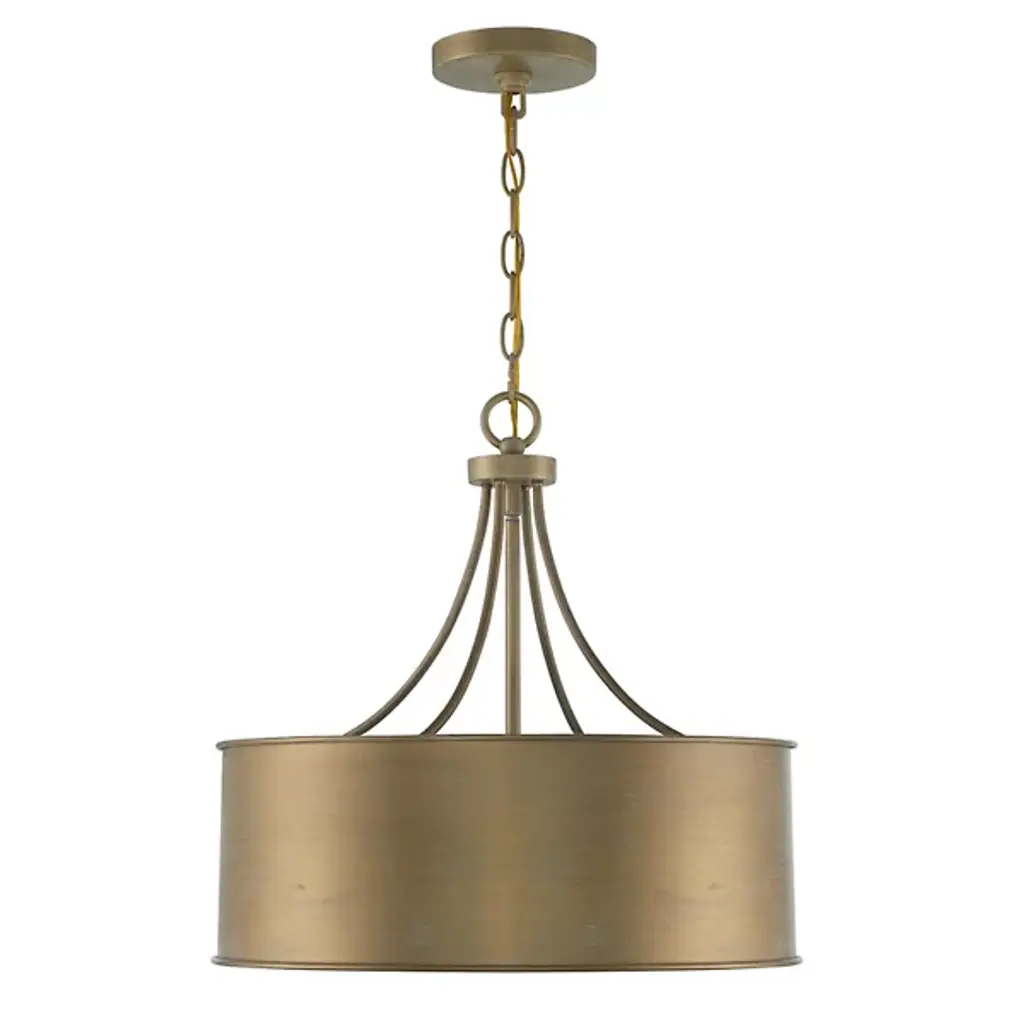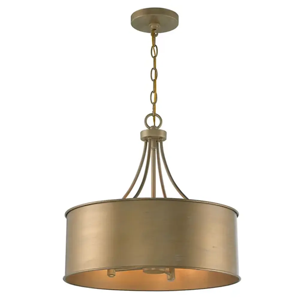 The Winslow Pendant from Alder & Ore delights with its simple and layered design. The fixture is defined by an intricate transitional style, with a slim canopy and central chain that supports transitional lamping below. A cylindrical drum shade surrounds the lamping and emits a warm and inviting glow, enhancing the ambiance of its surroundings. The design pairs transitional and contemporary styles, its detailed design and refined silhouette becoming the focal point in any room.