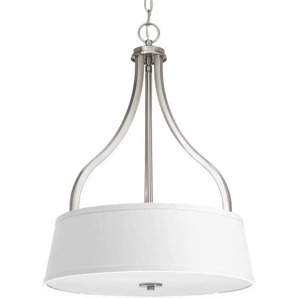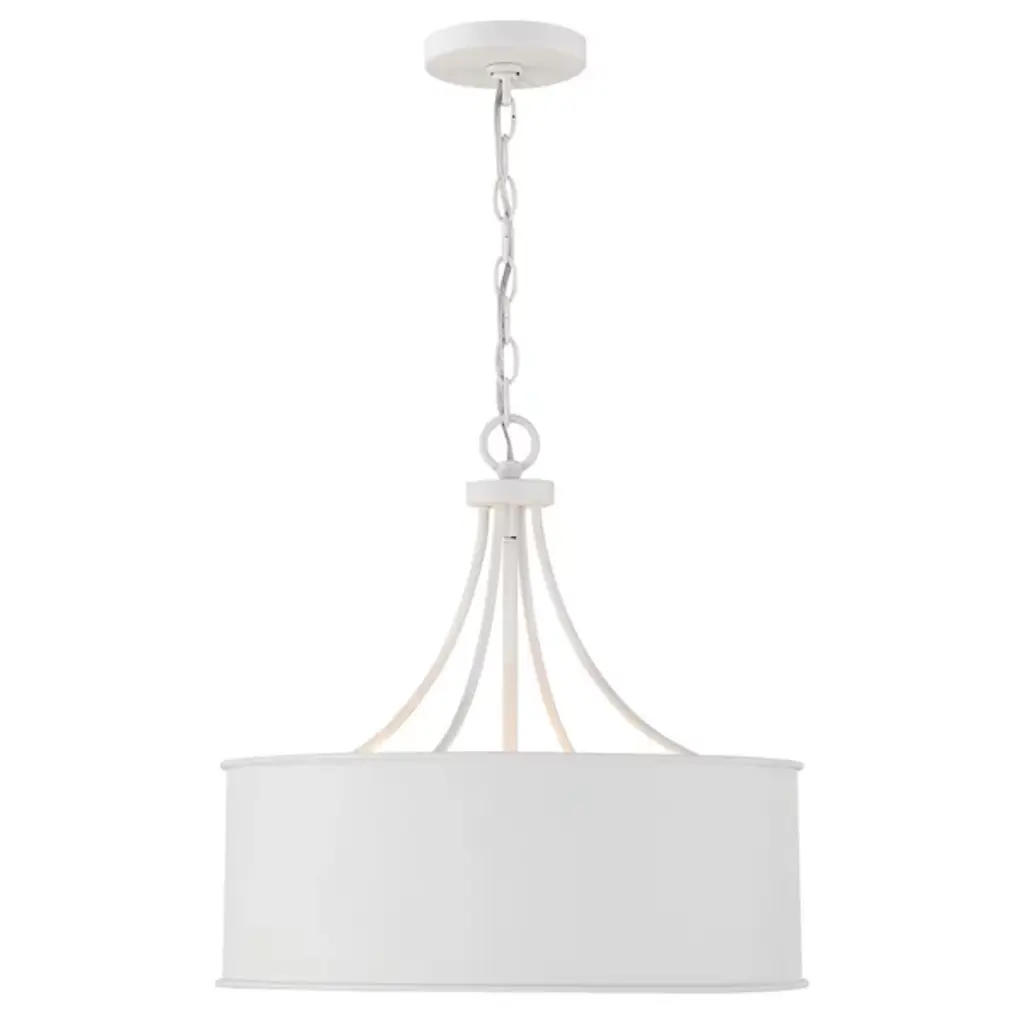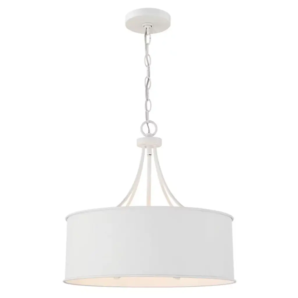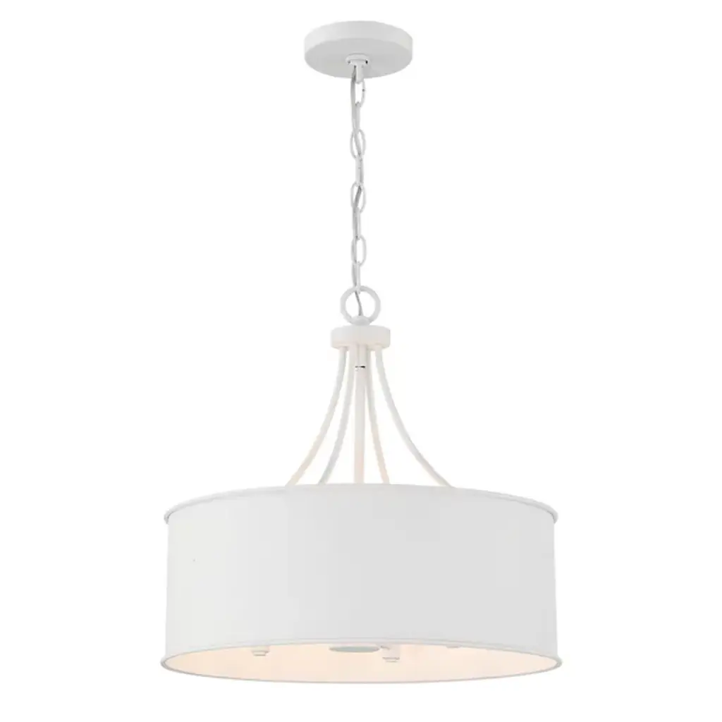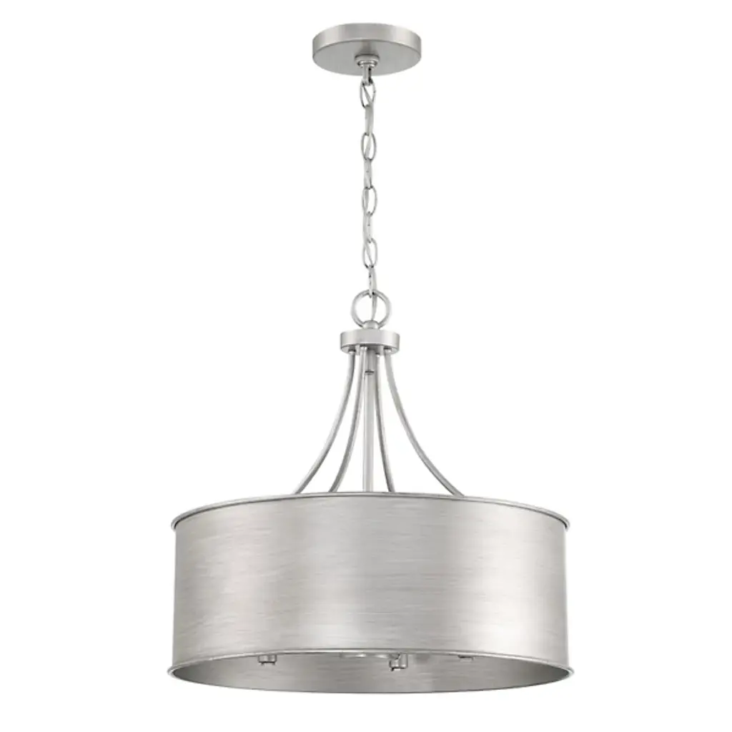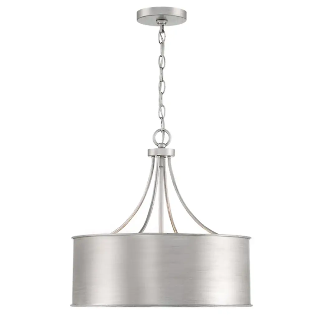 The Winslow Pendant from Alder & Ore delights with its simple and layered design. The fixture is defined by an intricate transitional style, with a slim canopy and central chain that supports transitional lamping below. A cylindrical drum shade surrounds the lamping and emits a warm and inviting glow, enhancing the ambiance of its surroundings. The design pairs transitional and contemporary styles, its detailed design and refined silhouette becoming the focal point in any room.