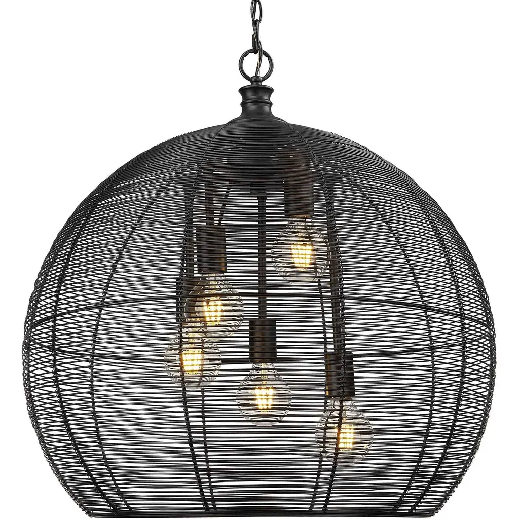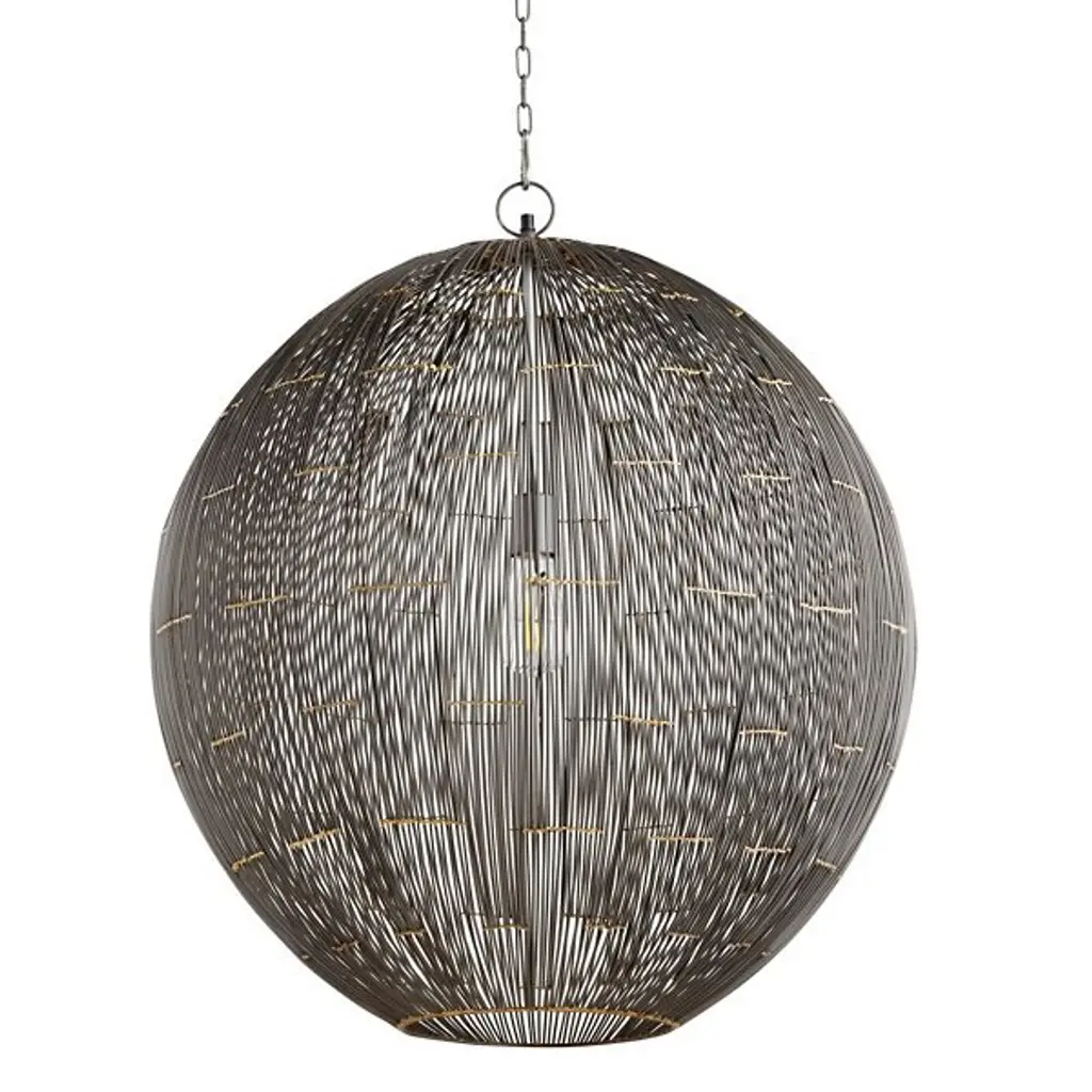 Artful, stylish, dazzling. Prepare yourself for the mesmerizing silhouette and bountiful glow of the Wire Sphere Pendant from Quorum International. It’s an unmissable object anywhere in the home, hanging elegantly with a chain link suspension. The piece shares comparisons with modern sculpture as artisans show their skilled hands by intricately arranging fine metal strips. The strips flow in endless curves from top to bottom and connect to create a charming globe shape. The caged sphere fills you with intrigue as it softly conceals the image of the bulb inside. When turned on, the delightful bulb creates a dazzling linear silhouette as it filters through in a spacious ambient light.
