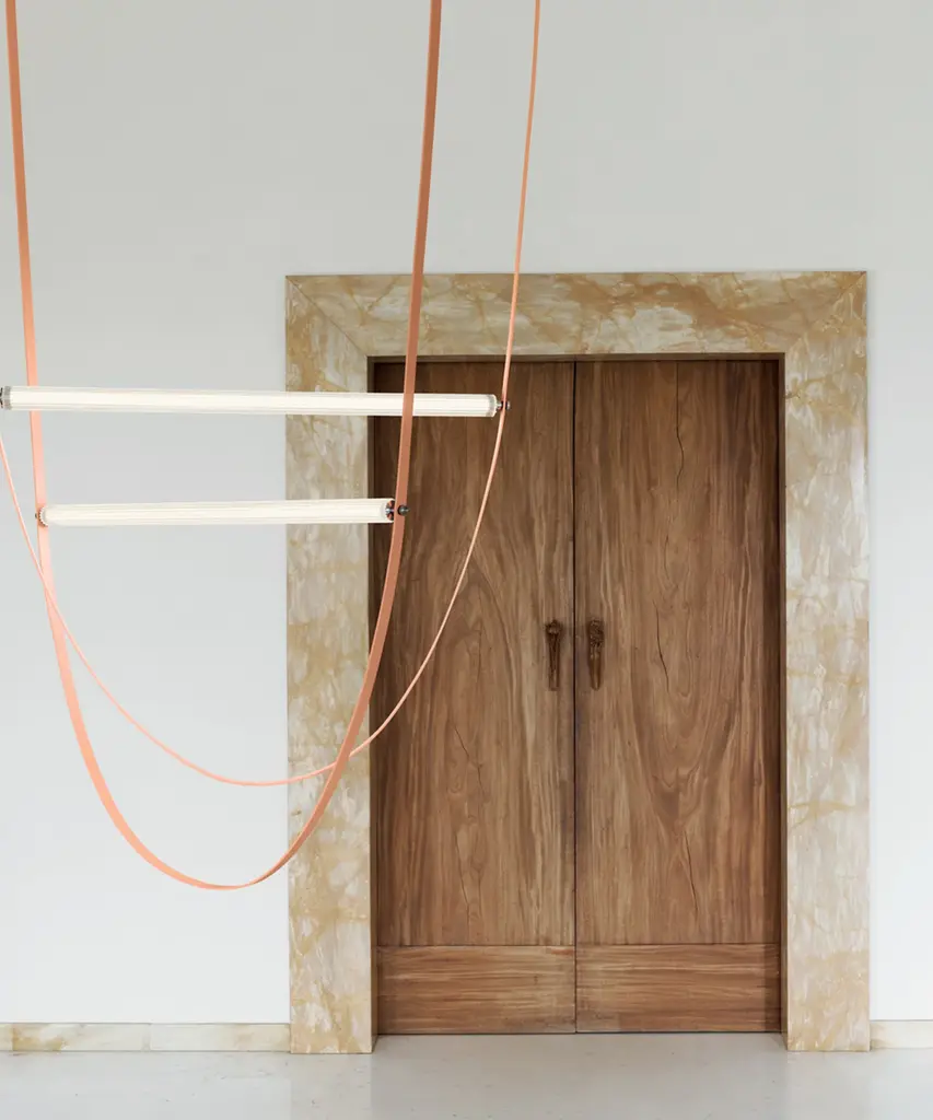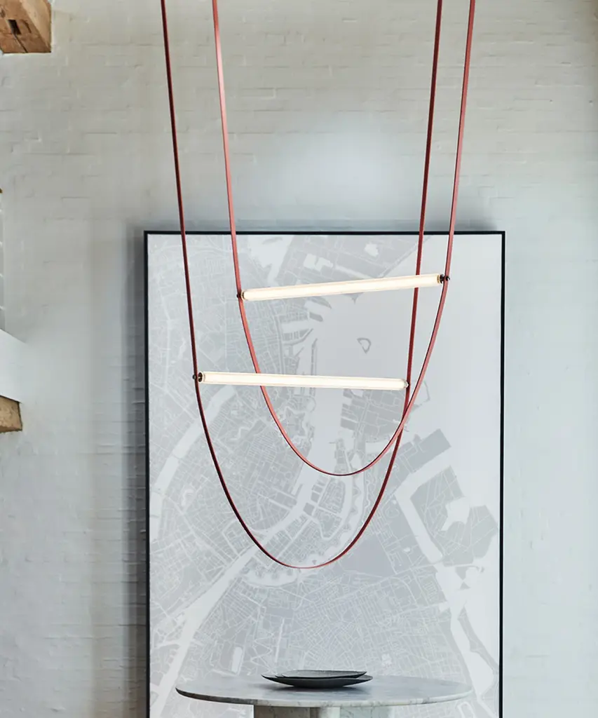 Interior Design's 2021 Best of Year Awards Winner Designed by Formafantasma, Wireline sits somewhere between artistic expression and industrial design. Designers Andrea Trimarchi and Simone Farresin's latest creation for Flos represents their design ethos and aesthetic values, where functionality meets the unexpected. It's a piece that neatly fits within the studio's universe, where design, social responsibility, and ecology collide. Designers Formafantasma explores the contrast between the industrial feel of rubber and the lightness of glass with Wireline. Wireline is a suspension light that providing diffused light. The diffuser is inside the transparent tubular extruded glass. The cable, available in pink and forest green, is made of rubber This authentic design is produced in Italy exclusively by Flos.