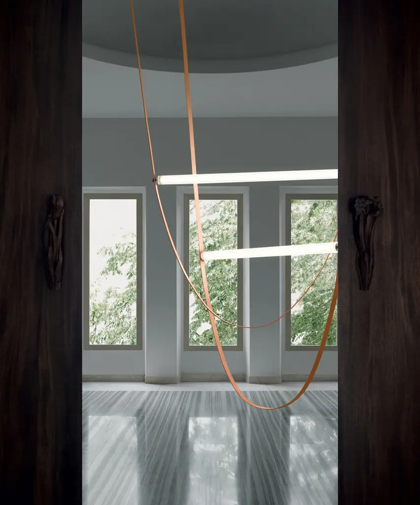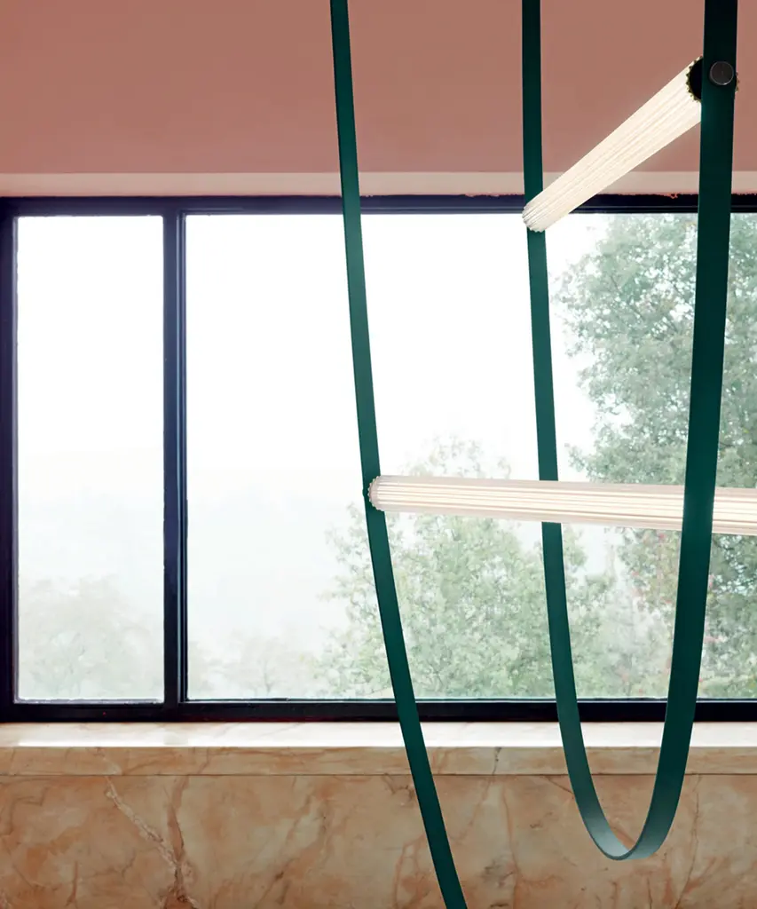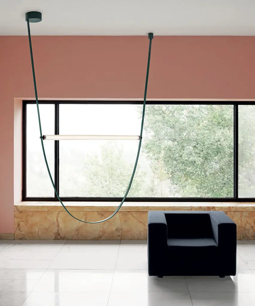 Interior Design's 2021 Best of Year Awards Winner Designed by Formafantasma, Wireline sits somewhere between artistic expression and industrial design. Designers Andrea Trimarchi and Simone Farresin's latest creation for Flos represents their design ethos and aesthetic values, where functionality meets the unexpected. It's a piece that neatly fits within the studio's universe, where design, social responsibility, and ecology collide. Designers Formafantasma explores the contrast between the industrial feel of rubber and the lightness of glass with Wireline. Wireline is a suspension light that providing diffused light. The diffuser is inside the transparent tubular extruded glass. The cable, available in pink and forest green, is made of rubber This authentic design is produced in Italy exclusively by Flos.