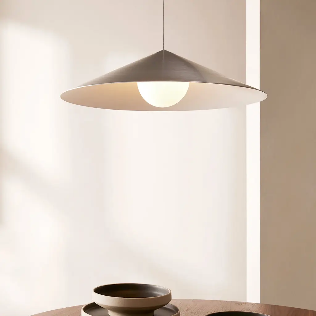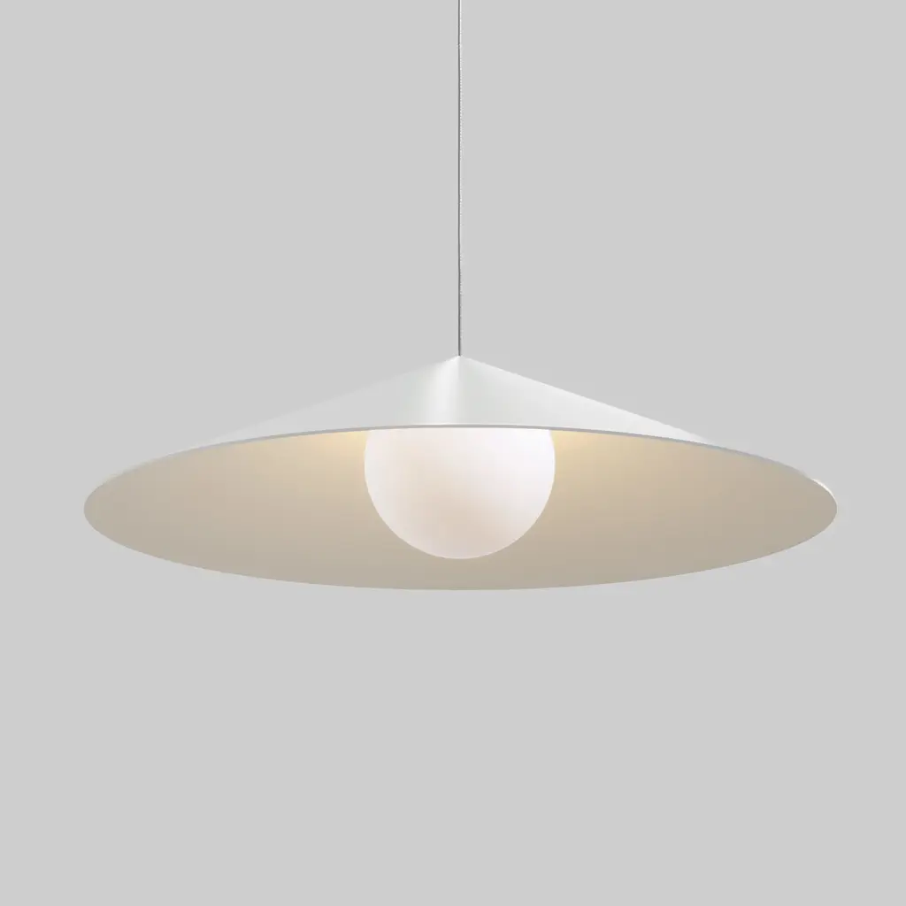 Upgrade your living space with the sleek, mid-century vibes of the Wisp 120 LED Pendant Light from Anony. Crafted with high-quality aluminum, its conical design encases a brilliant LED, perfectly complemented by a stunning acid-etched opal glass globe. Secured with a disc-shaped canopy, this pendant comes outfitted with a field-adjustable cable to ensure custom installation. Highlights