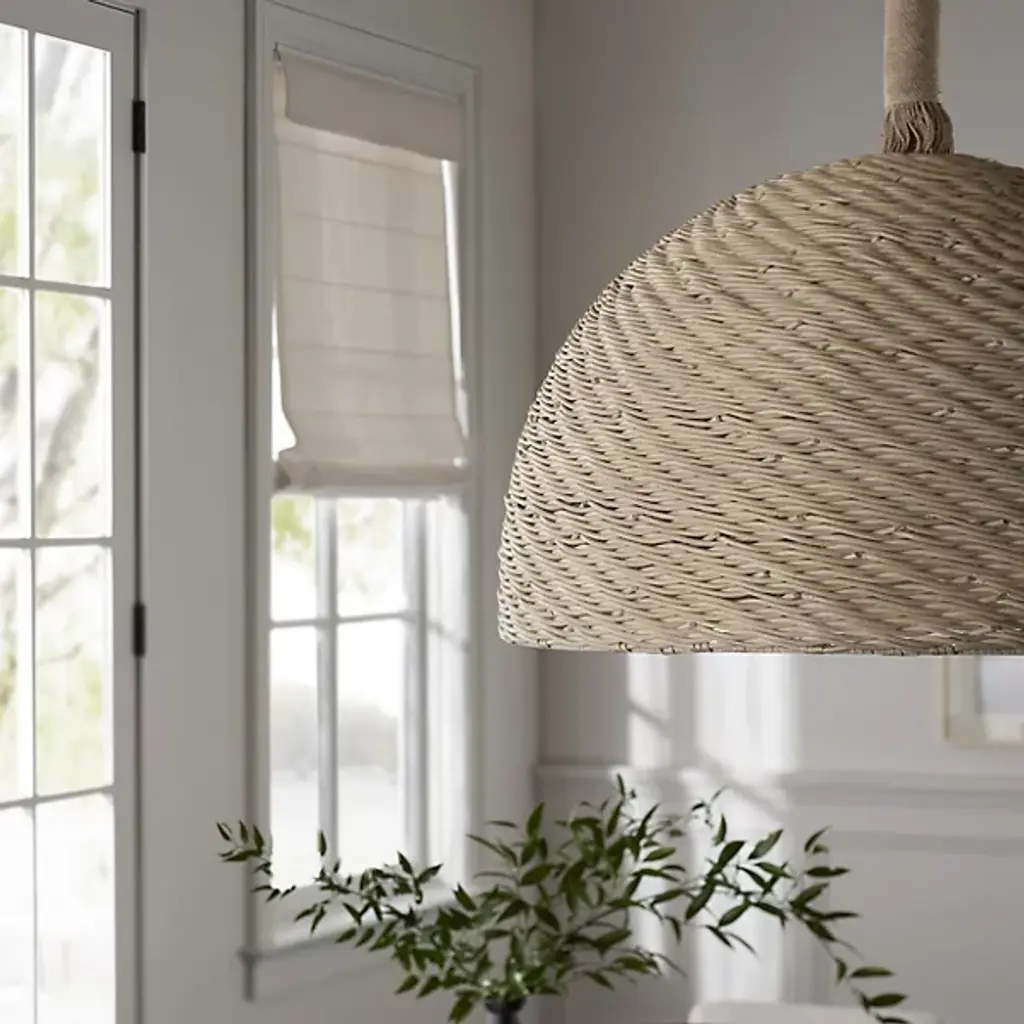Bring an eloquent elegance to gathering spaces with the Wisteria Oversize Pendant from Palecek. A small circular ceiling mount secures the fixture, dispatching a fine length of chain to strong lamping set inside a dome-shaped shade of finely-woven wicker. The looping strands add a welcome touch of coastal depth, dispatching a mix of reflected warmth and focused downlight through the open base of the shade.
