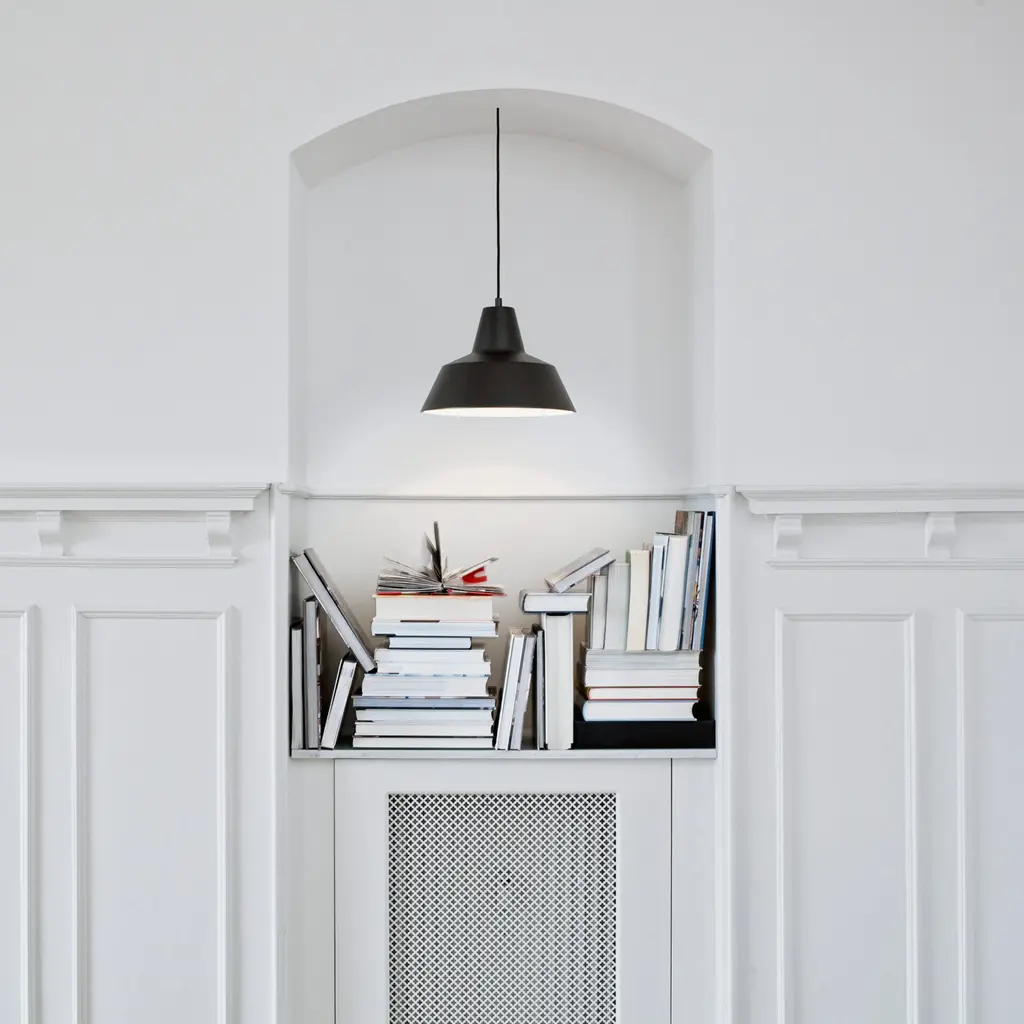 Long a familiar sight in homes, schools and offices, this pendant is an enduring piece of Danish design history. Originally conceived in 1951 by Axel Wedel Madsen as a necessary light for workspaces, the large W4 along with other variations has been relaunched by Denmark brand Made By Hand. Produced by skilled craftsmen, the aluminum shade has a notable thickness without overbearing heft. A truly versatile player, W4 comes in a range of luscious colors as well as matte and solid tones of black, white or grey. Or choose a metallic look in silvery lacquered aluminum or a copper version with a reflective white interior.