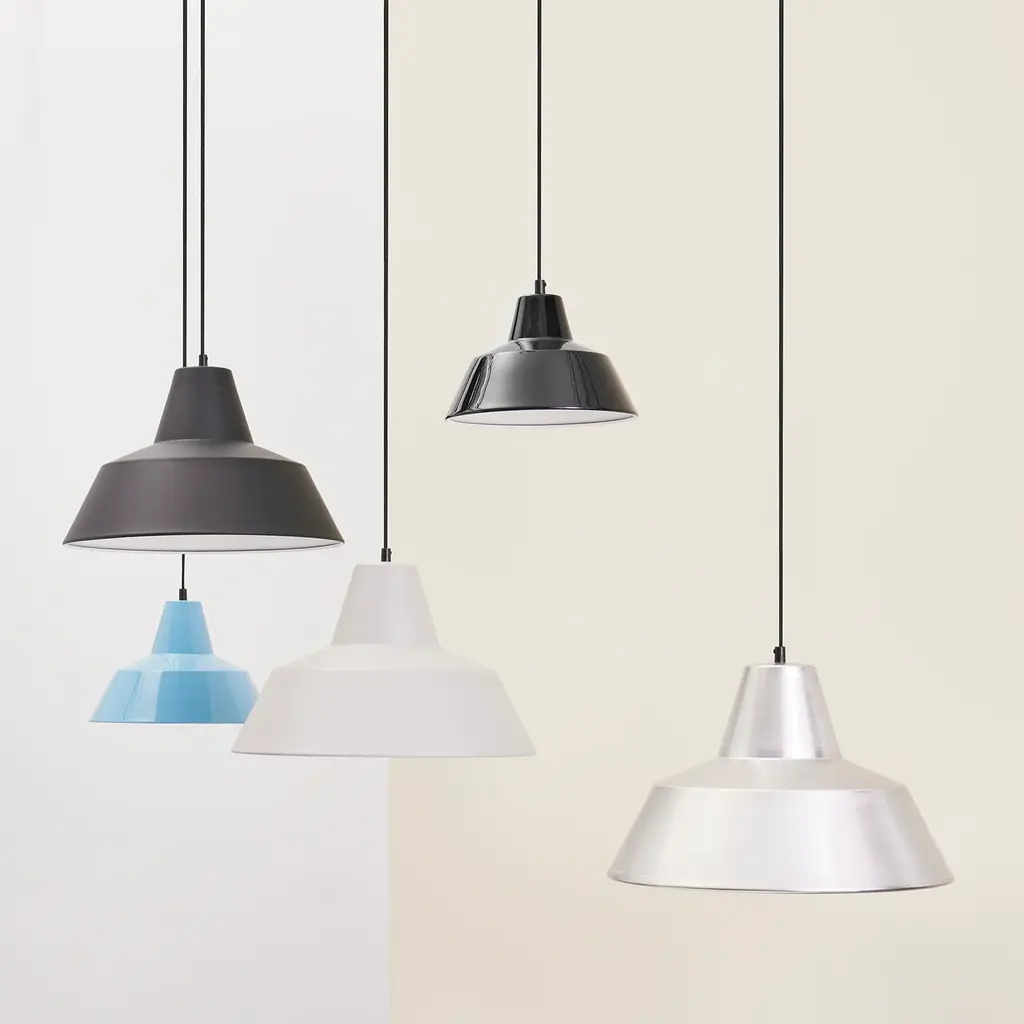 Long a familiar sight in homes, schools and offices, this pendant is an enduring piece of Danish design history. Originally conceived in 1951 by Axel Wedel Madsen as a necessary light for workspaces, the large W4 along with other variations has been relaunched by Denmark brand Made By Hand. Produced by skilled craftsmen, the aluminum shade has a notable thickness without overbearing heft. A truly versatile player, W4 comes in a range of luscious colors as well as matte and solid tones of black, white or grey. Or choose a metallic look in silvery lacquered aluminum or a copper version with a reflective white interior.