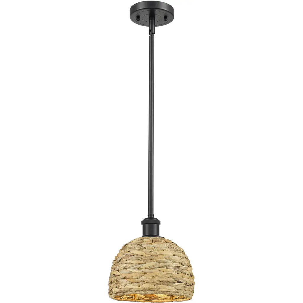 Woven Rattan 1 Light 12 Inch Matte Black Pendant Ceiling Light