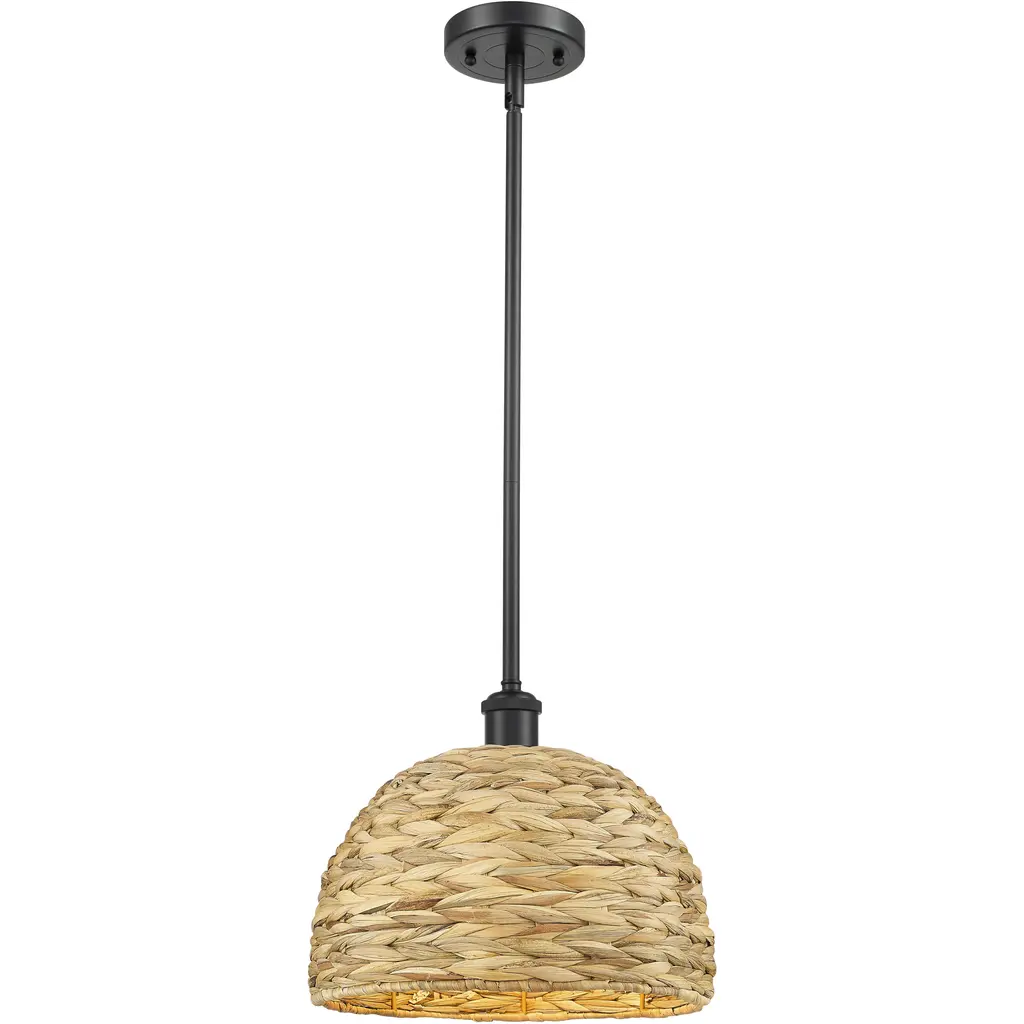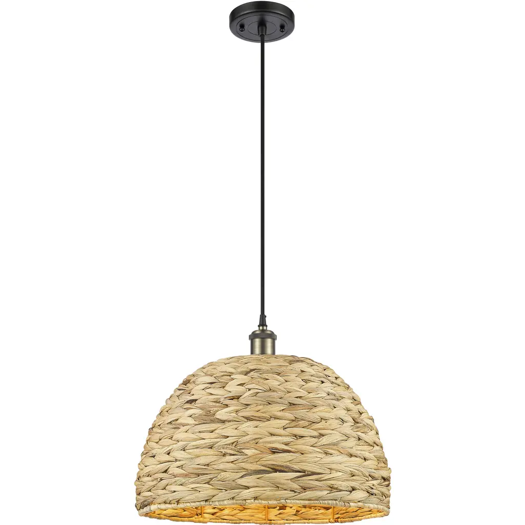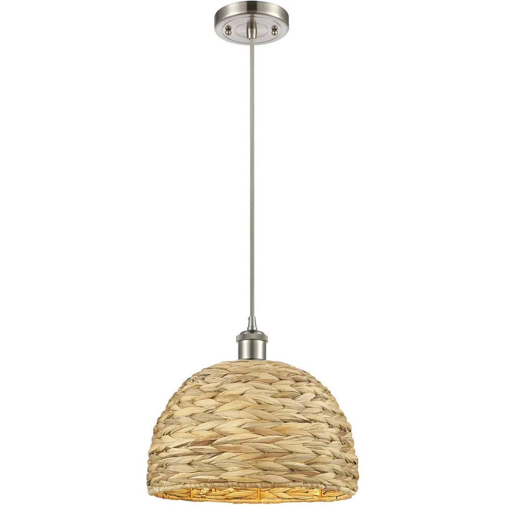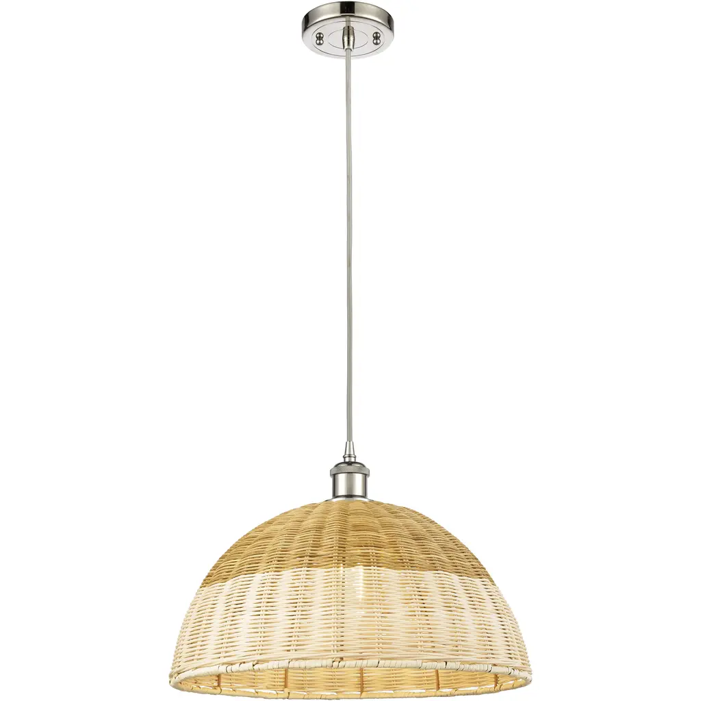 Woven Rattan 1 Light 12 Inch Polished Nickel Pendant Ceiling Light