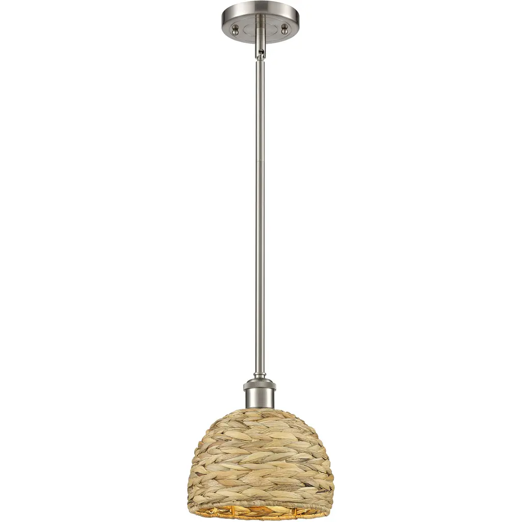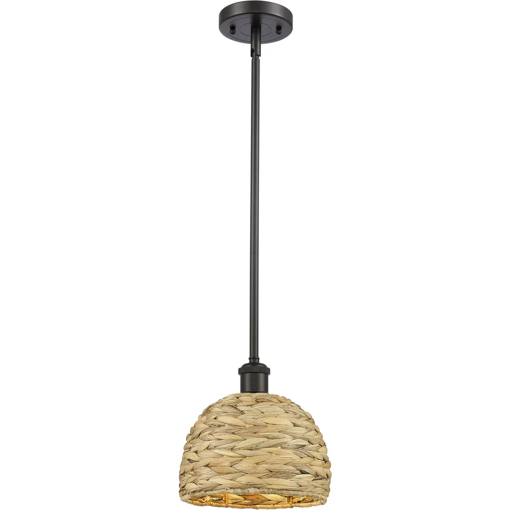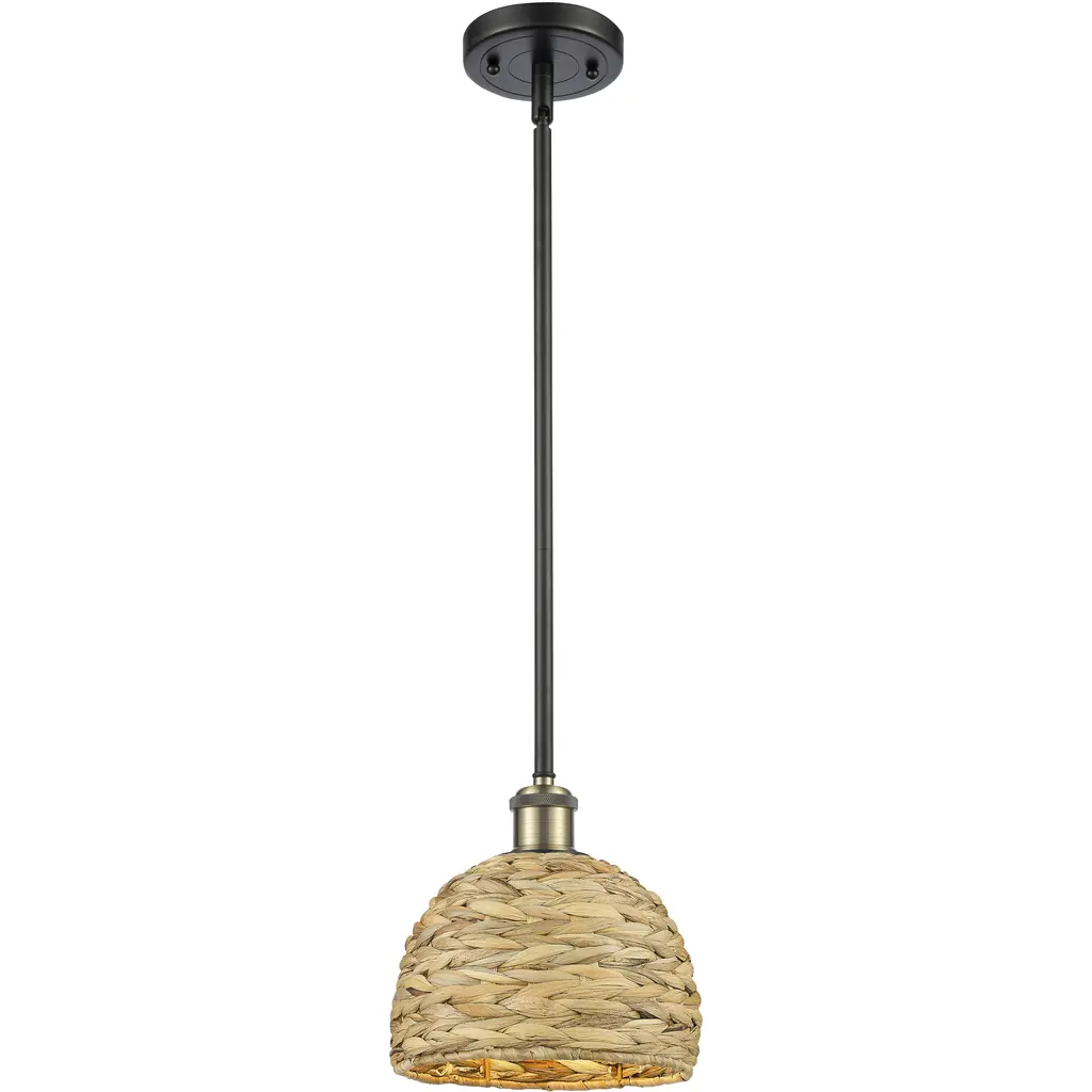 Woven Rattan 1 Light 8 Inch Matte Black Pendant Ceiling Light