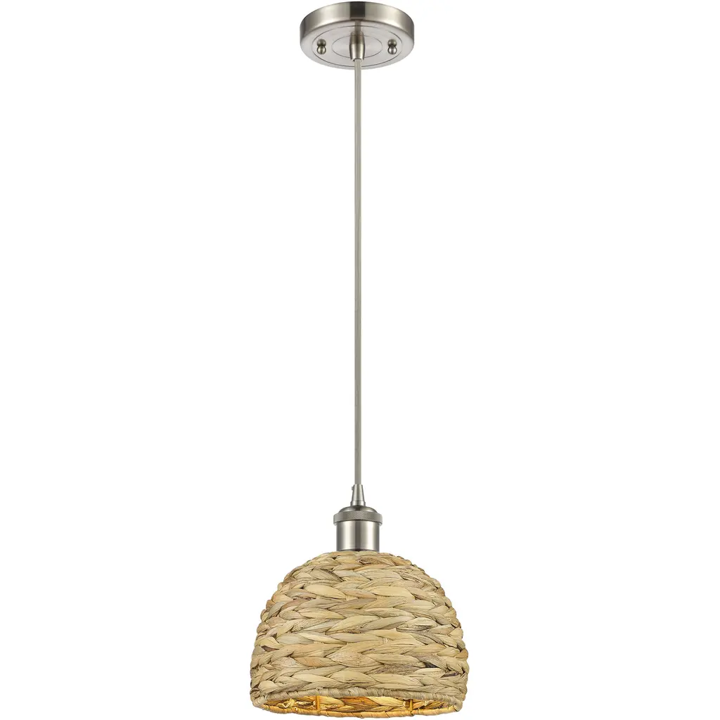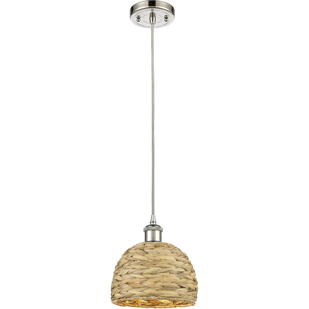 Woven Rattan 1 Light 8 Inch Polished Chrome Pendant Ceiling Light