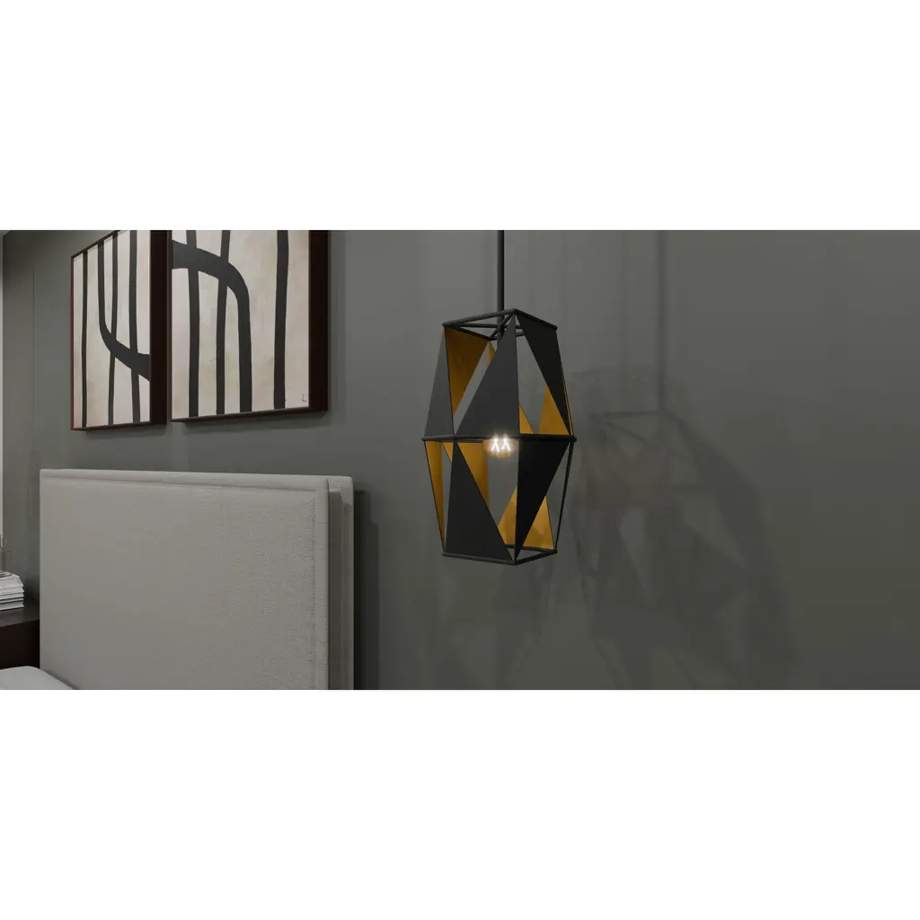 With a geometric design and industrial styling, Wren pendant lights make an artistic statement. Metal triangles form a unique cut-out shade, pairing perfectly with the matte black frame. An exposed bulb socket peeks through the design, creating a fun illumination effect perfect for any kitchen or bar area.