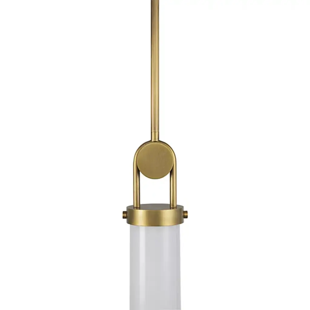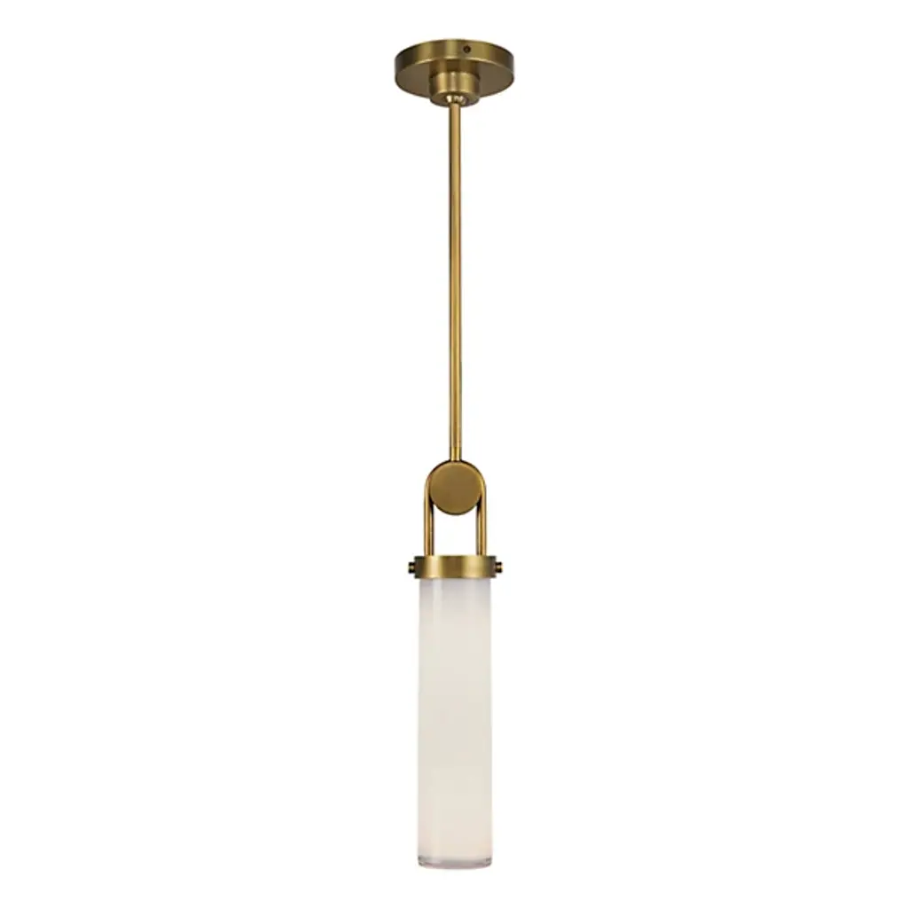 Give an inspired elegance to interiors with the Wynwood Mini Pendant by Alora Lighting’. Designed by Alan Pepin, this slim design combines elegance with timeless charm. Crafted from robust steel with a weathered finish, it descends from a slim steel frame descending from a circular canopy. A single cylinder shade of opal glass inward from a circular canopy. The design delightfully melds industrial elements with glossy glass, mellowing bright, unrestricted light to a welcome warmth. Drawing inspiration from older machinery components, the piece revives older styles, accentuated by a small metal loop adorning the stem, creating a perfect balance of modern sophistication and vintage aesthetics.