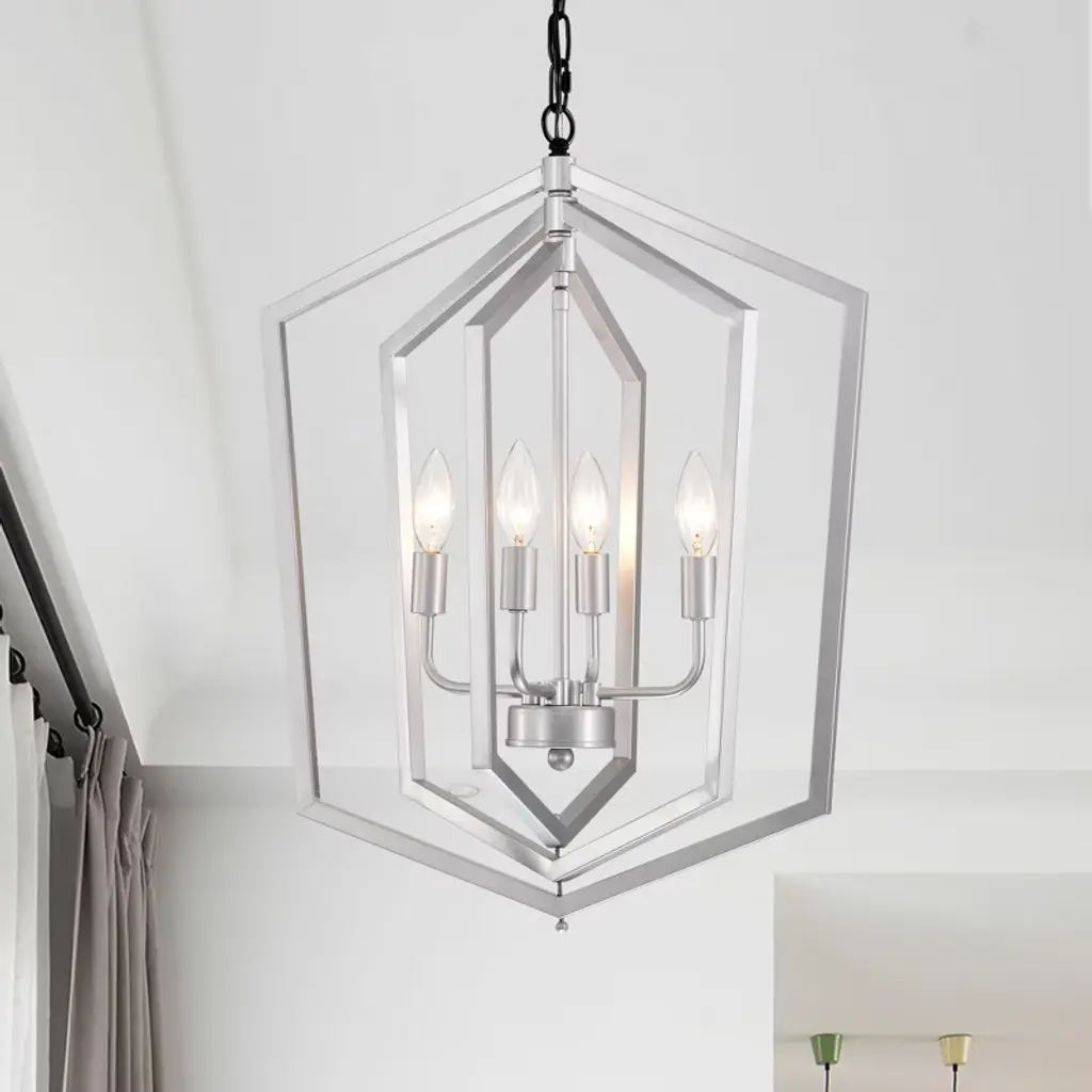 Xinghanzhenxuan Silver 18.11-in Modern Industrial Chandelier, Pendant Light For Dining Room, Kitchen Island, Entryway, Foyer (Bulbs Not Included)