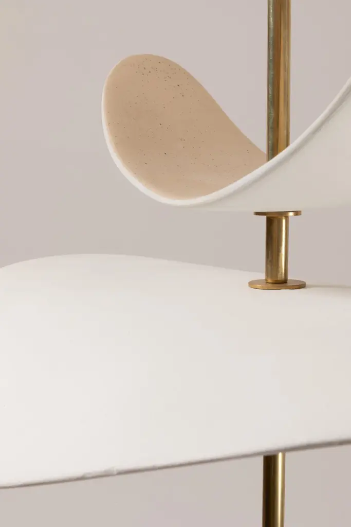 Xl Floating Organic Forms Sculptural Ceramic & Brass Lamp By Elsa Foulon