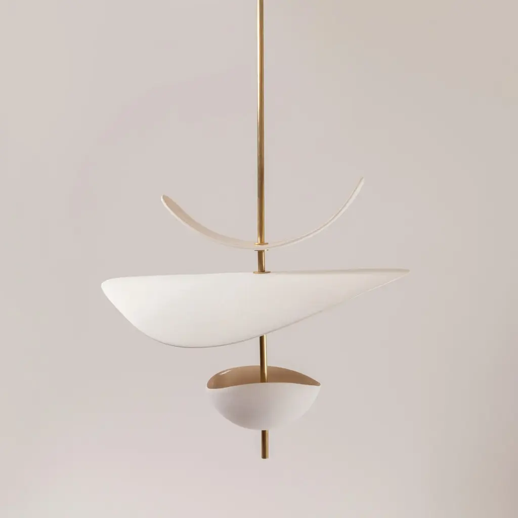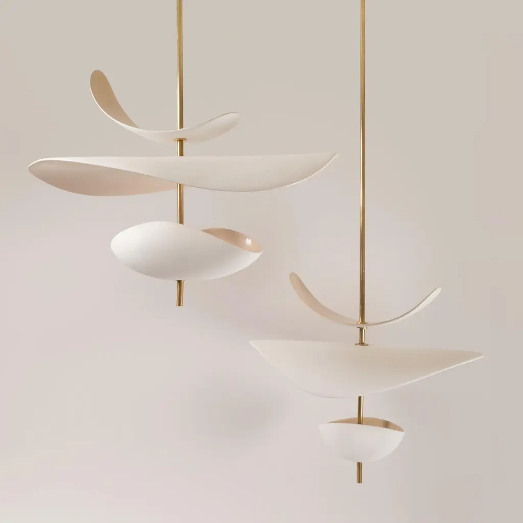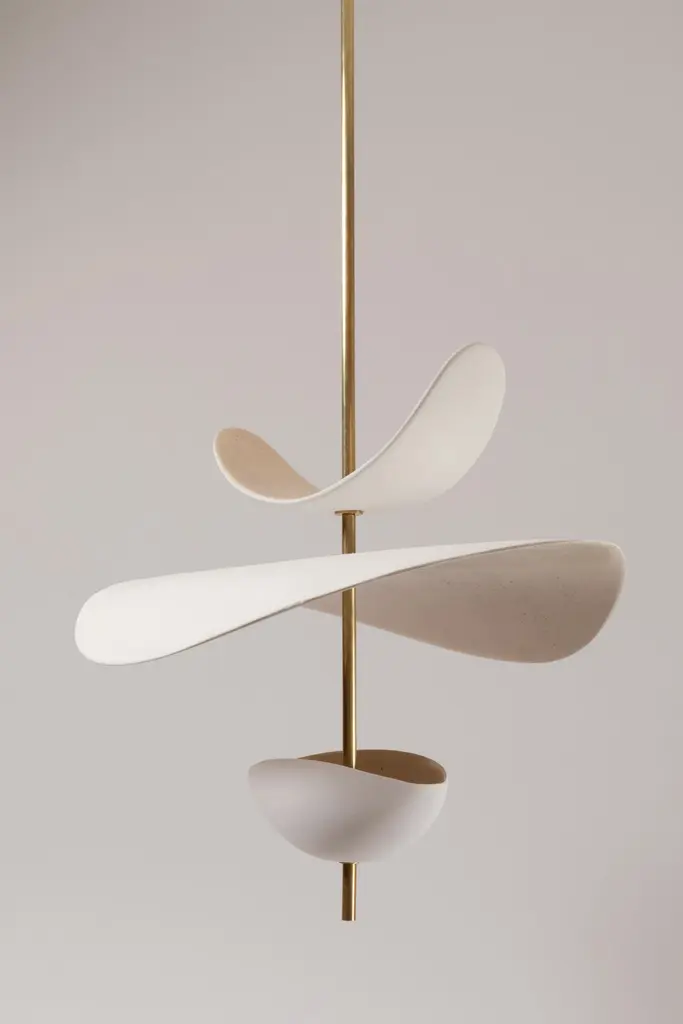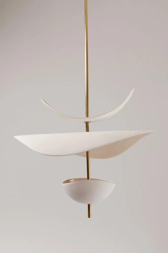Antigone XL Pendant Lamp by Elsa FoulonUnique PieceDimensions: 75 x 50 x H 35cm + Stem height made to orderMaterials: Ceramic, BrassAlso available in different options: Bowl or Cup (lower part).All our lamps can be wired according to each country. If sold to the USA, it will be wired for the USA, for instance.All of our items are handmade and may have slight variations or imperfections as the materials used can vary in color, making each piece one of a kind, and no two pieces will ever be identical. We believe this gives them their individual character and charm.Elsa Foulon, before becoming a ceramist, was born the daughter of an antique dealer and then became a dealer in 20th-century decorative arts. She has always had a personal taste, accumulating images of this century rich in creators. From this visual experience, her lighting fixtures are born as sculptures, her free and pure forms mixing her artistic and technical skills as a designer.This self-taught thirty-something loves large formats that seemed incompatible with her medium. she has now developed her own plate technique and materials that allow her to achieve her beautiful volumes while maintaining the lightness of her organic structures.Despite the skill of her processes and the mastery of her subject, what interests Elsa in the secrecy of her Parisian studio is the beauty of the ancestral gesture: the long time between the idea and the object is always unique. The unpredictability of the fire shapes her lights. The material that these hands work with brings sensitivity to contemporary design.Finally, the light that she will hide in the hollow of her sculpture will subtly reveal the roughness of the clay.