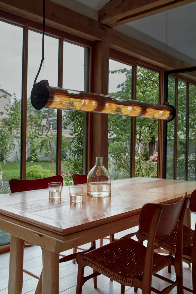 Extra large in the tube horizontal pendant lamp by Dominique Perrault & Gaëlle Lauriot-PrévostDimensions: D 16 x H 132 cmMaterials: Borosilicat GlassAvailable in different sizes.All our lamps can be wired according to each country. If sold to the USA it will be wired for the USA for instance.In The Tube lamp diffuses a filtered, softened, directed and oriented light via the simple fixed or removable positioning of a shaped filter-mesh or a reflector, whose material "gives" the colour.Dominique Perrault was born in 1953 in Clermont-Ferrand, he studied in Paris and received his diploma as an architect from the École des Beaux-Arts in 1978, He received a further degree in Urbanism at the École Nationale des Ponts et Chaussées in 1979, as well as a Master's in History at the EHESS in 1980. He created his own firm in 1981 in Paris.Gaëlle Lauriot-Prévost's carrer is closely linked to that of Dominique Perrault, as she conceives and supervises all projects of the studio as its art director. Perrault's work is also that of Gaëlle Lauriot-Prévost, a product of a mutual collaboration for more than over twenty years. Educated at the school Camondo, she joined Perrault in 1989.