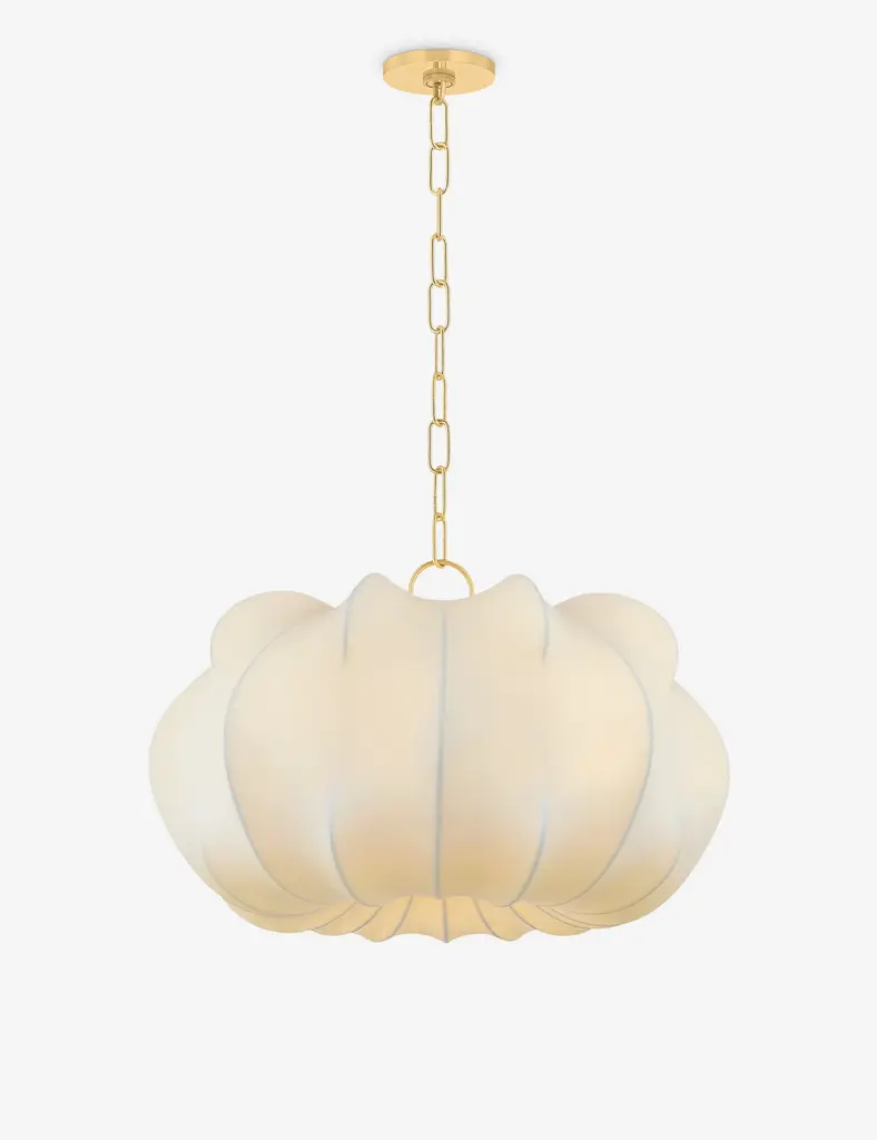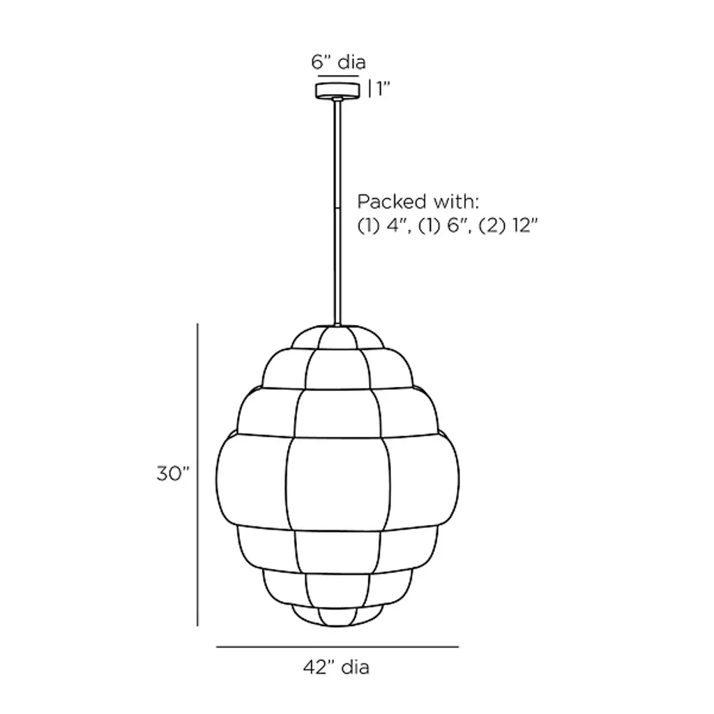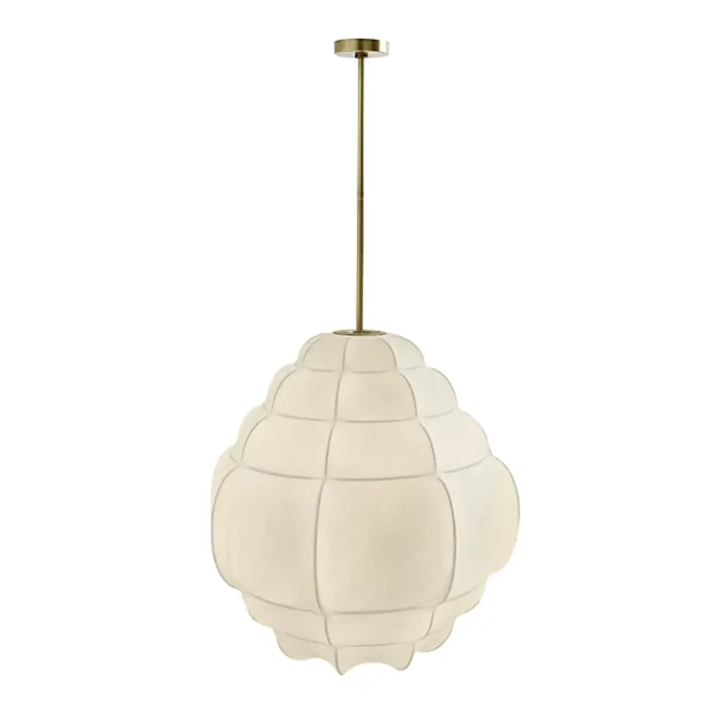 The Yahara Pendant from Arteriors is an exquisite blend of transitional aesthetics and design. Crafted from durable steel, this elegant chandelier features a single-tiered structure with a shade made of luxurious vegan vellum. The distinctive form of Yahara resembles a bee’s nest, adding an intriguing touch to your space. The chandelier illuminates your home with brilliant LED light. You can adjust Yahara’s brightness level using a separately sold ELV dimmer.