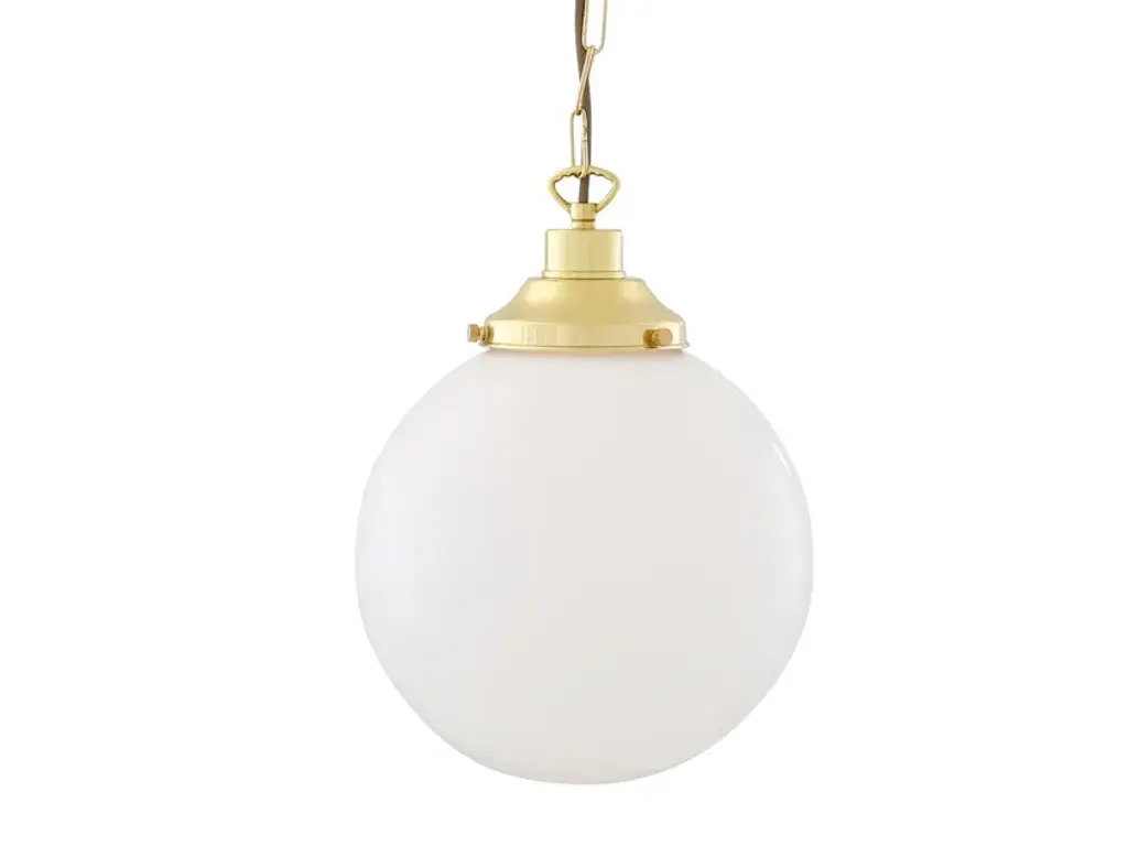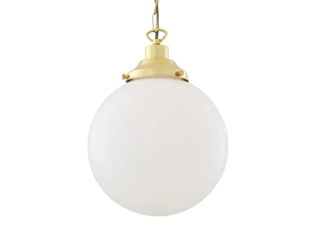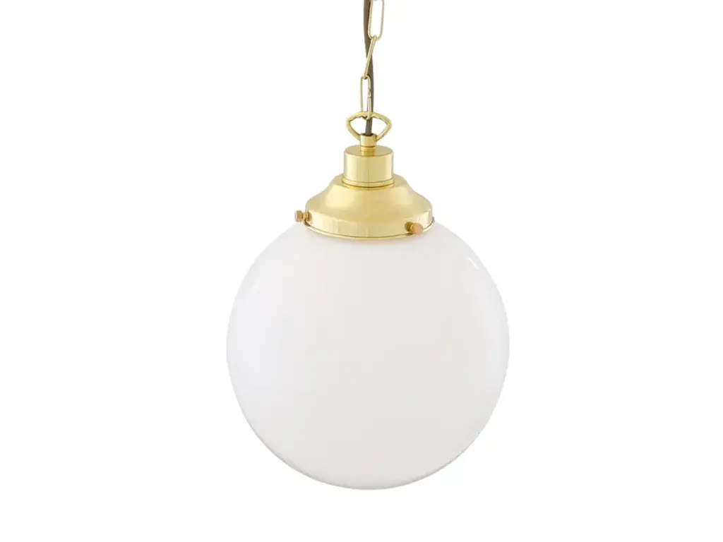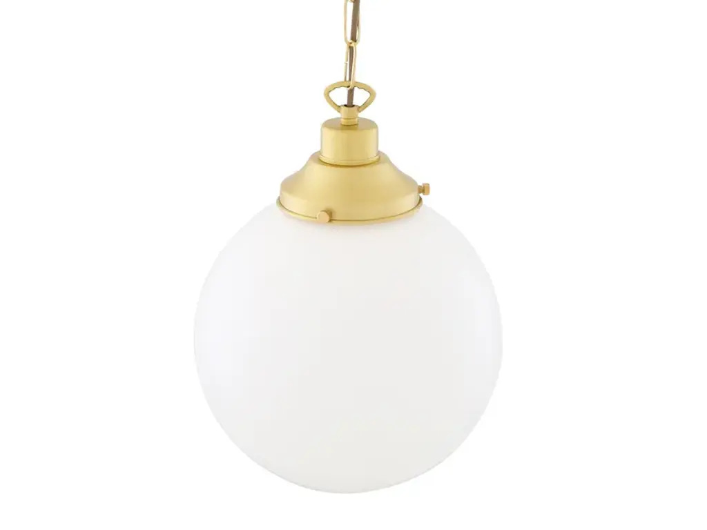 With an eye-catching design, the Yerevan Globe Pendant Light creates the perfect ambience for modern homes. This globe pendant light is a perfect addition in a foyer, above a kitchen island. Suspended from a simple chain, this glass pendant light features a classic opal glass shade to cast a soft ambient light over a wide area.Suitable for any modern and traditional interiors, this globe pendant light looks great when lit with a warm bulb for a soft lighting. Bulbs are sold separately.Material: brass | glass Weight: 1,32 kg | 2.91lbLampholder: E27Max wattage: 40WVoltage: 220/240VIP rating: IP20Class protection: 1Shade: GL044DFlex | bar | chain lengt 100 cm | 40''Cable type: MLCA010 | 2 core flat | brown | PVC