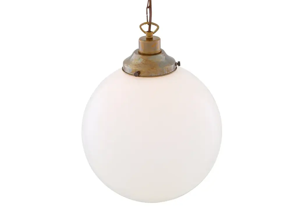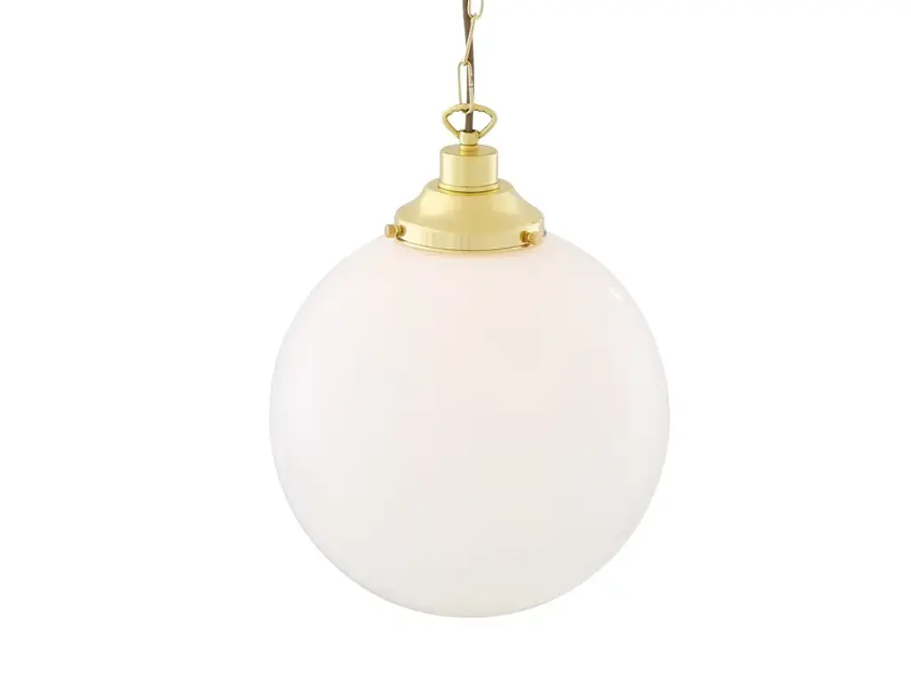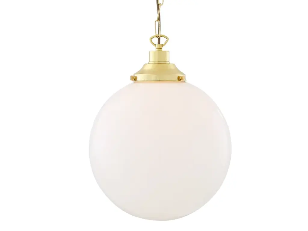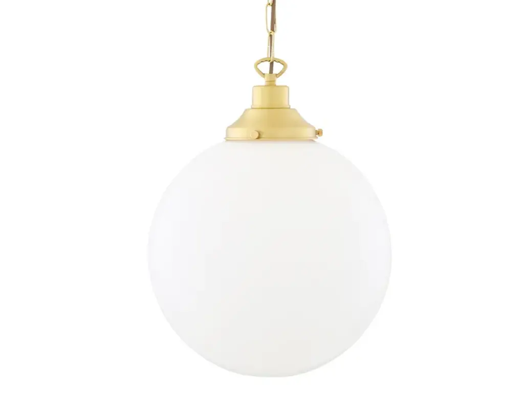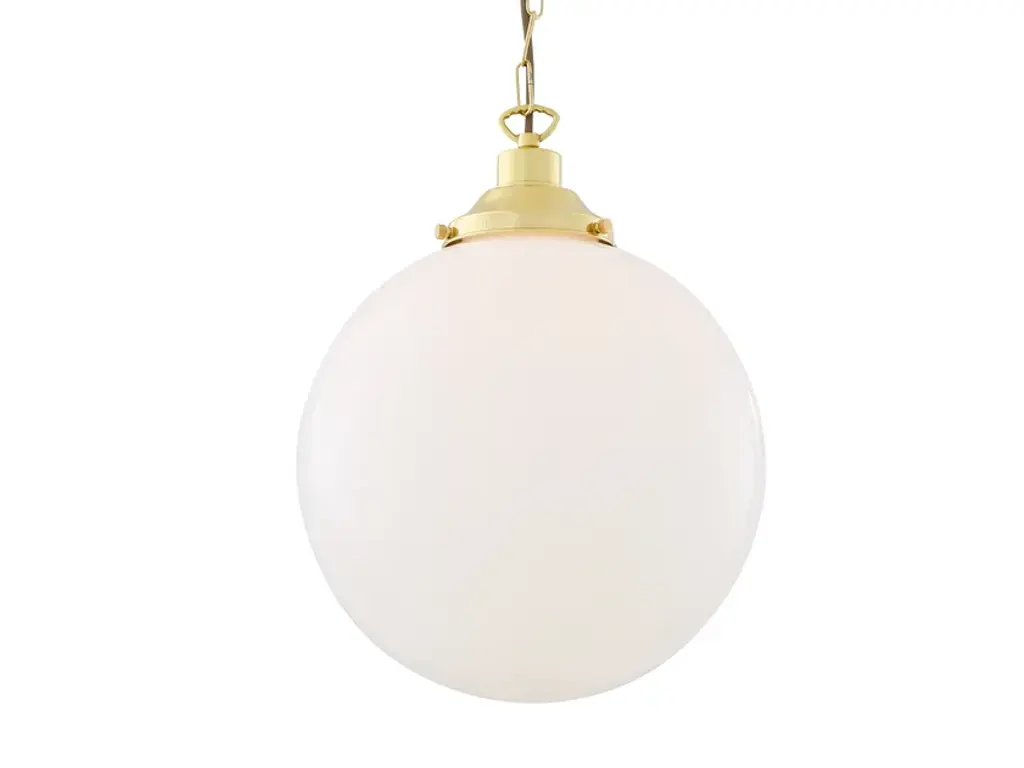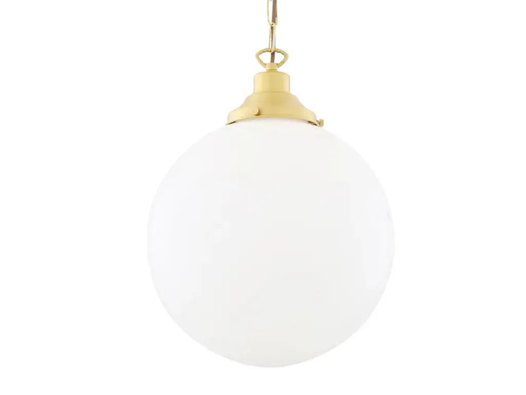 With an eye-catching design, the Yerevan Globe Pendant Light creates the perfect ambience for modern homes. This globe pendant light is a perfect addition in a foyer or above a kitchen island. Suspended from a simple chain, this glass pendant light features a classic opal glass shade to cast a soft ambient light over a wide area.Suitable for any modern and traditional interiors, this globe pendant light looks great when lit with a warm bulb for a soft lighting. Bulbs are sold separately.Product Weight: 2,6 kg / 5.7 lbCE Approved: YesUKCA Approved: YesCeiling Rose: MLROSE05 | 10 cm DiameterGlass Code: GL044CIP Rating: IP20Lampholder: E27 | Plastic | ES | Edison ScrewMaterial: Brass, GlassMax Wattage: 60WProtection Class: Class IStandard Cable/Chain Length: 100 cmVoltage 110v/120v or 220v/240v (depending on delivery location)