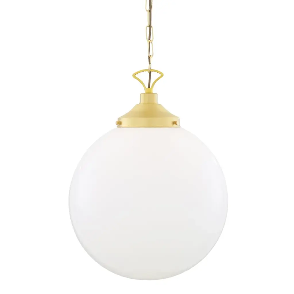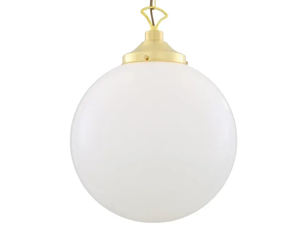 With an eye-catching design, the Yerevan Globe Pendant Light creates the perfect ambience for modern homes. This globe pendant light is a perfect addition in a foyer or above a kitchen island. Suspended from a simple chain, this glass pendant light features a classic opal glass shade to cast a soft ambient light over a wide area.Suitable for any modern and traditional interiors, this globe pendant light looks great when lit with a warm bulb for a soft lighting. Bulbs are sold separately.Product Weight: 4.1 kg / 9 lbCE Approved: YesUKCA Approved: YesCeiling Rose: MLROSE05 | 10cm DiameterGlass Code: GL044AIP Rating: IP20Lampholder: E27 | Plastic | ES | Edison ScrewMaterial: Brass, GlassMax Wattage: 60WProtection Class: Class IStandard Cable/Chain Length: 100 cmVoltage: 110/120V or 220/240V (depending on delivery location)