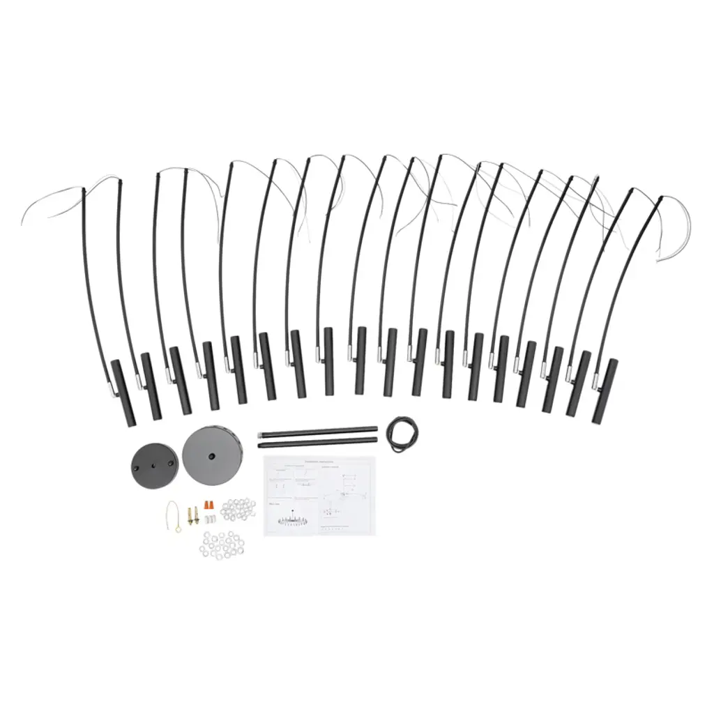 Crafted from high-quality iron, this branch pendant is sturdy and durable. The exquisite black baking paint finish and unique branch shape blend seamlessly with soft ambient lighting to create a captivating industrial ambiance that complements various decors. The rotating lamp holder enables you to freely adjust the lighting to your specific aesthetic preferences, making it an ideal fit for entryways, living rooms, bedrooms, and dining rooms alike. Specification Material: Iron Color: Black Efficiency: E Finish: High-temperature Baking Paint Voltage: 110V/60Hz Light Source: 18*G9 LEDs (Not Included) Applicable Power: 5-7W Indoor/Outdoor Usage: Indoor Mount Type: Ceiling Mount Assembly Required: Yes Control Method: Wall Switch Applicable Ceiling Height: >2.8m/9.18ft Base Size(D*H): 12*2.5cm/4.7*0.98in Product Size(D*H): 145*30cm/57*11.8in Illumination Area: About 30 ㎡/323 ft²