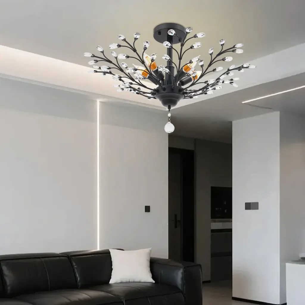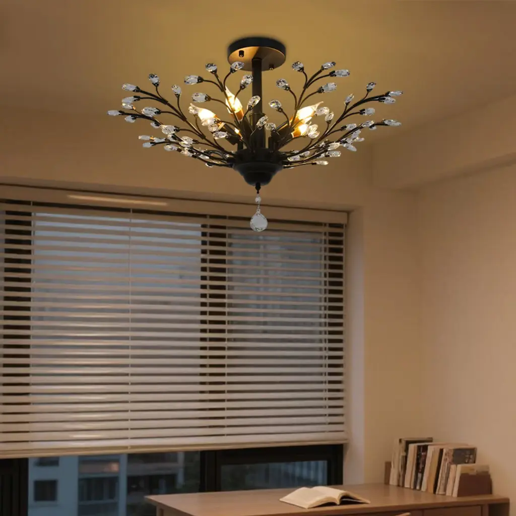 Yiyibyus Vintage Crystal Chandeliers, Branches Semi-flush Pendant Light