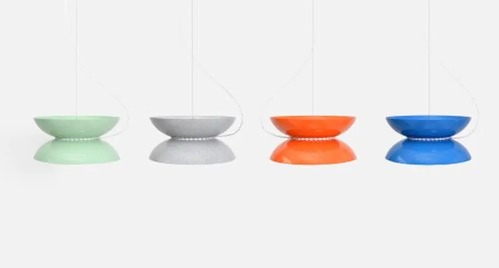 Vibrant and playful, this Yoyo Light brings a fresh, modern accent to living spaces. The up/down design and the two shade construction are creative and functional. Completed with a bright orange color and a smooth surface, the two spun aluminum shades will stand out in any setting, adding an eye-catching feature to modern interiors. An immaculate white swagged cotton-cord that elegantly wraps around the shades completes the design. Measuring 16’’ x 7.25’’, Yoyo Light will suit rooms of any size and can be installed on its own or paired with one or two pendants in larger living spaces. Other colors include classic black and white, as well as striking royal blue or elegant mint. Part of the Stuff collection designed by Andrew Neyer, this modern ceiling lighting is made in Ohio, USA..